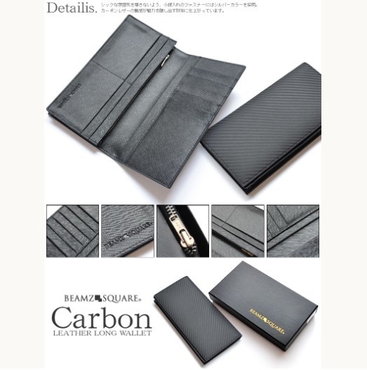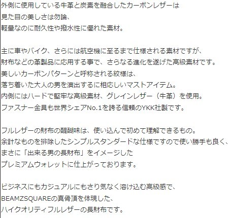 新品未使用 BEAMZSQUAREイタリアンカーボンレザー×グレインレザー 牛革長財布 YKKファスナー仕様の高品質フルレザーウォレット