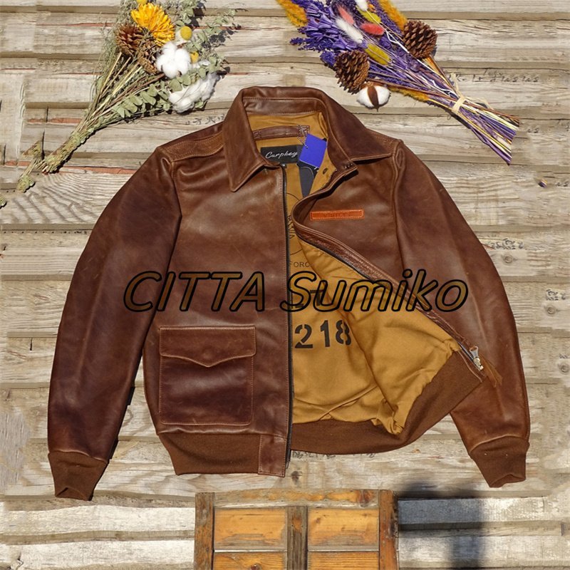 人気美品★ 秋冬 上品 A2 フライトジャケット メンズ ミリタリージャケット 空軍 牛革 本革 革ジャン M~XXL