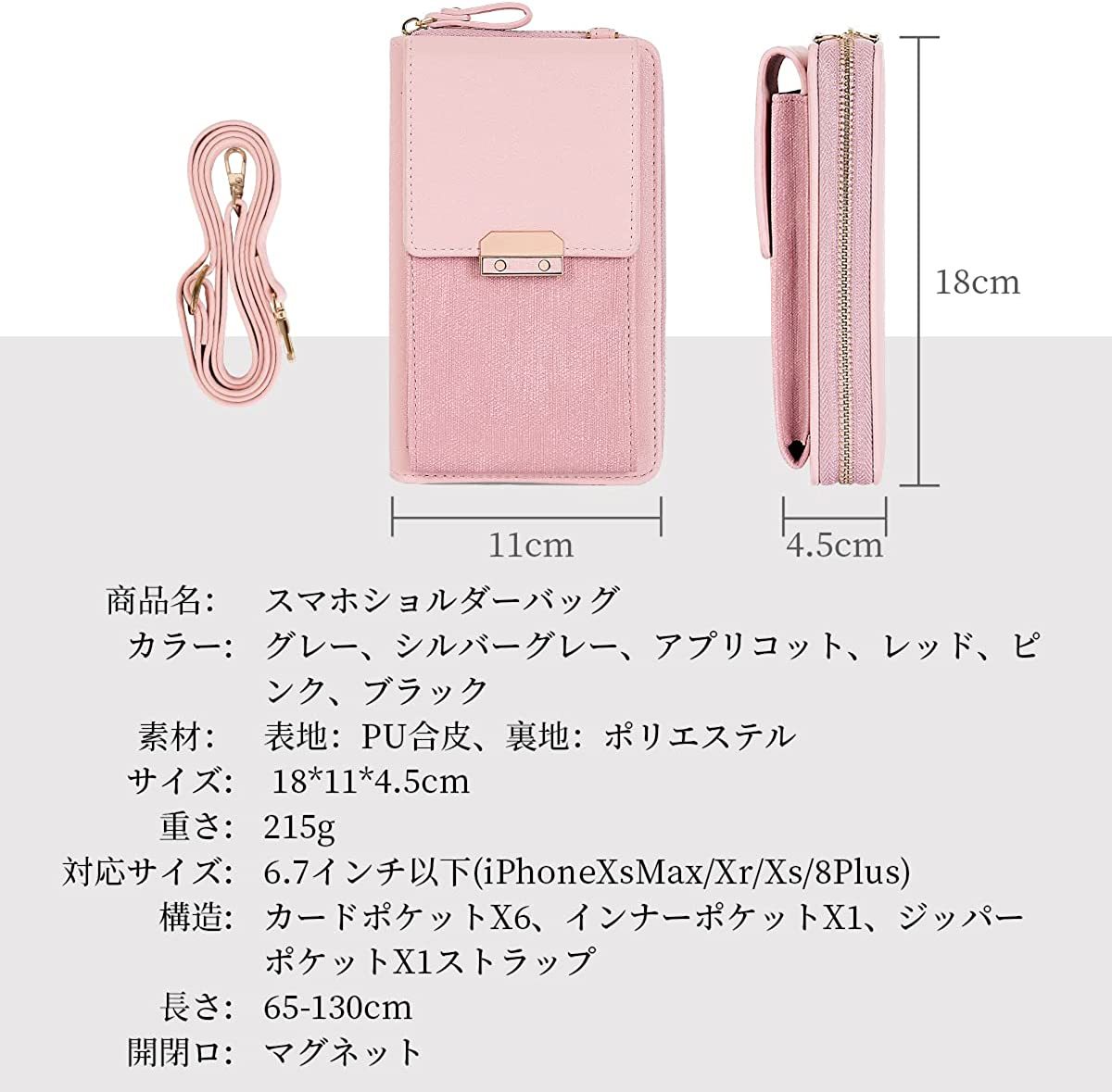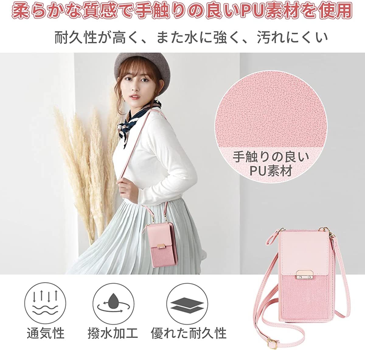 お手入れ手触りの良い優れた耐水性のPUレザーを採用しますので汚れたら拭き取るだけきれいになります。丁寧に縫製して、丈夫で触感が柔らかくて、ほんのり光沢がありレディーススマホポーチです,見た目と機能性を兼ね備えた人気おスマホショルダー。スマホショルダーはバックルでストラップ ひも長さが調整可能なのでショルダーや斜めがけなど2WAYでお使いいただくことができます