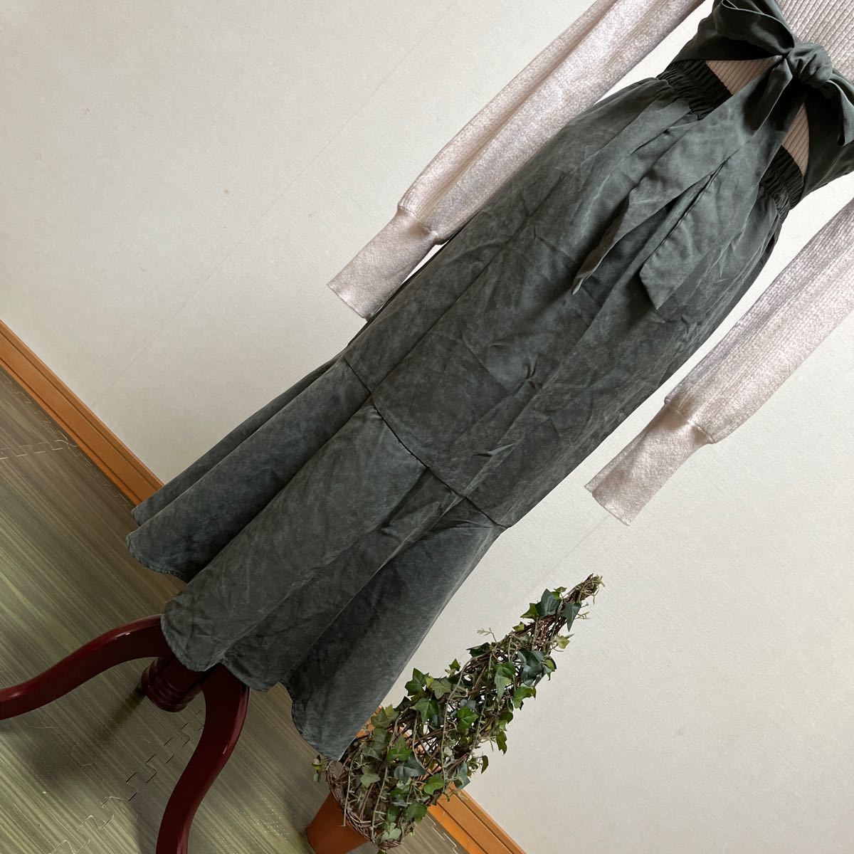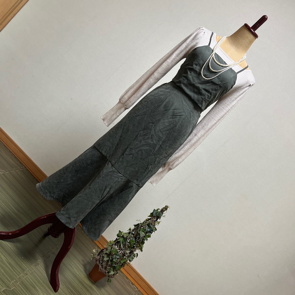 2-6新品 ベロアキャミソールワンピース ビスチェバックリボン+ロングマーメイドスカート オールインワンジャンスカセットアップ 7号 S