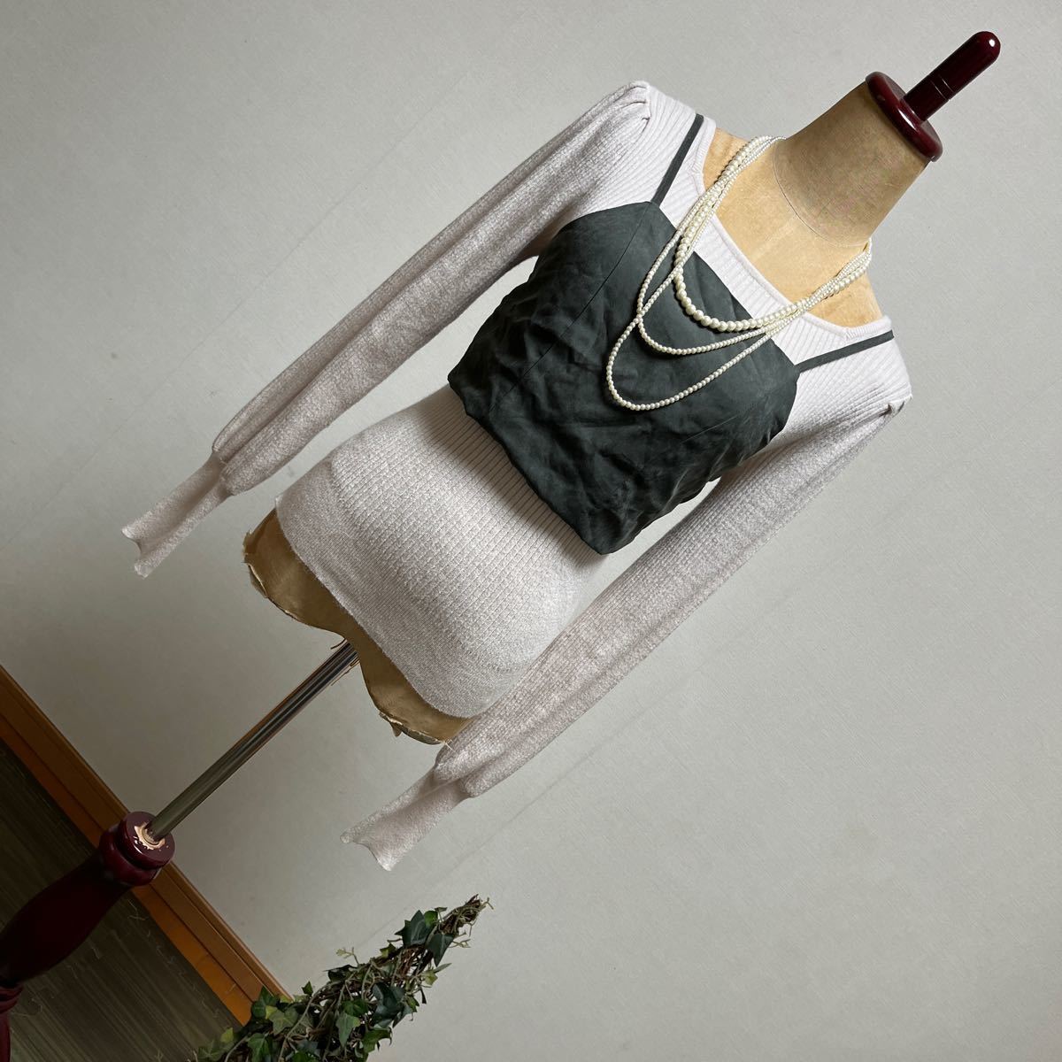新品のおしゃれなセットアップです。キャミソールは背中で結ぶタイプでスカートはおしゃれなマーメイドスカートです。別々でも着れて着回しができるので便利です。薄手素材でゴワゴワしまいです。白いニット、ネックレスはついていません。