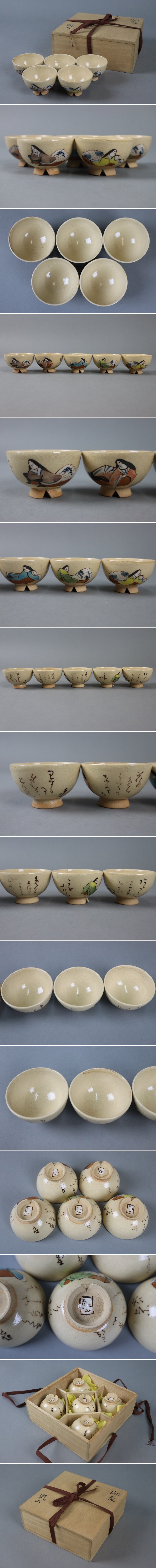 尾形乾山 御盃 5客 共箱 酒器 京焼 細密細工 古美術品[b1323]