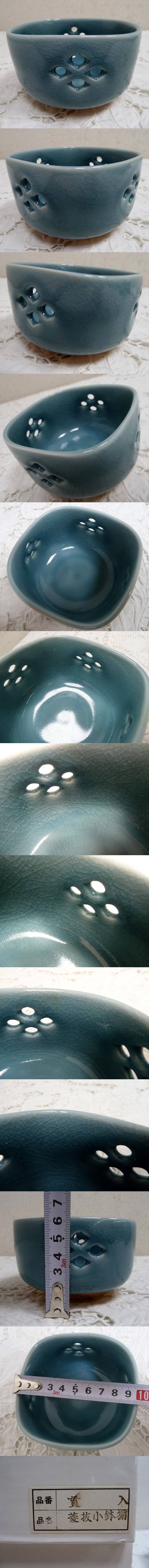 (☆BM)【SALE】陶印あり 菱抜小鉢揃/貫入 7客 和食器 コバルトブルー 淡藍色 水色 割烹 透かし 先付け 業務用 上品 無地