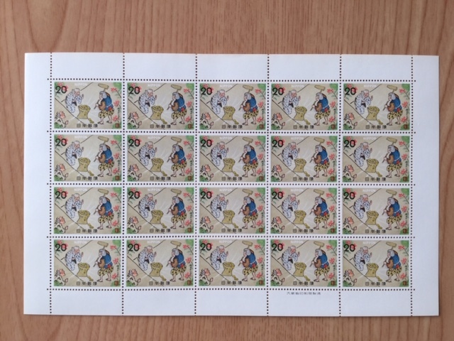 昔ばなしシリーズ 第1集 花さかじじい 大判小判 1シート(20面) 切手 未使用 1973年