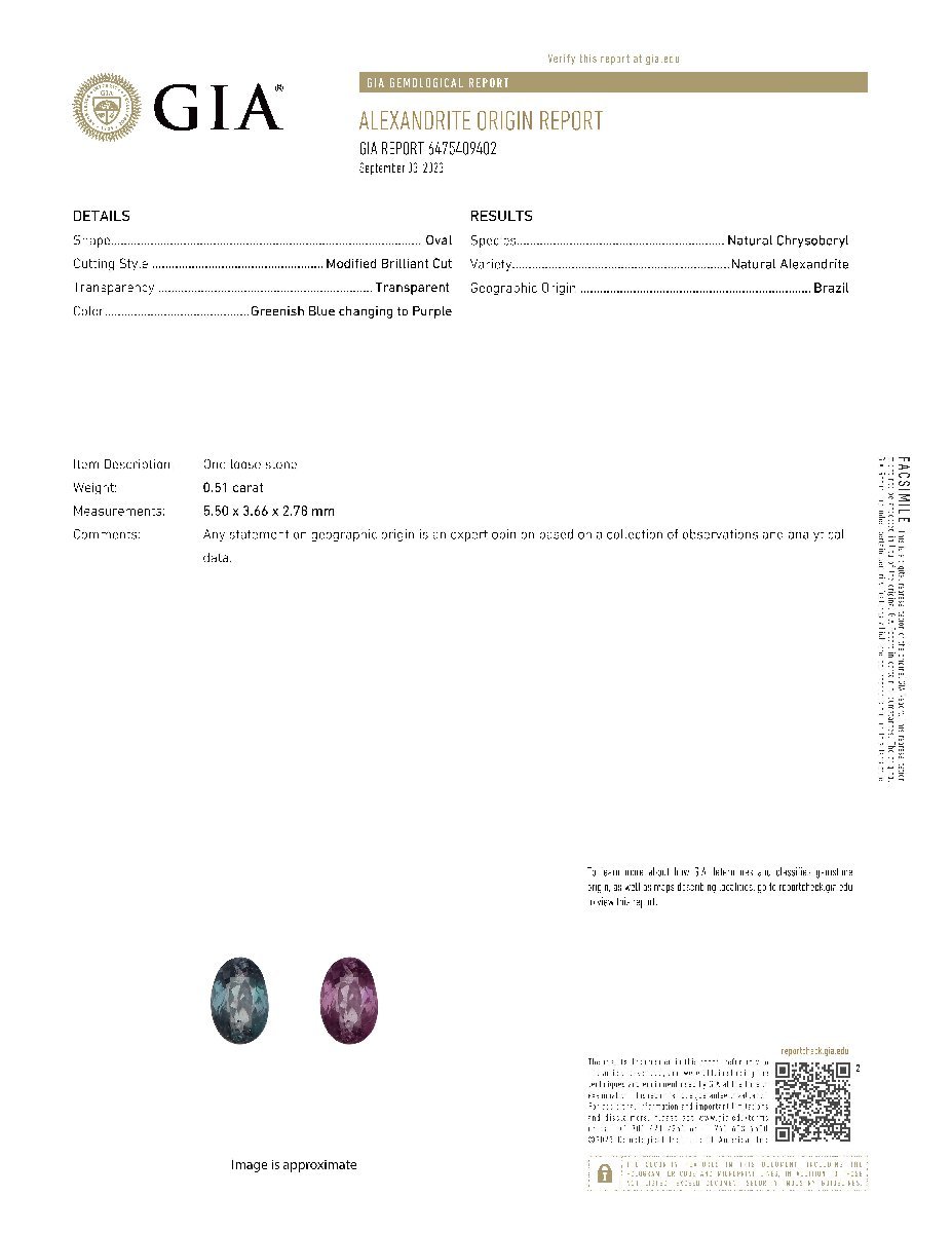 | カラット | 0.51ct (5.50 x 3.66 x 2.78 mm) |