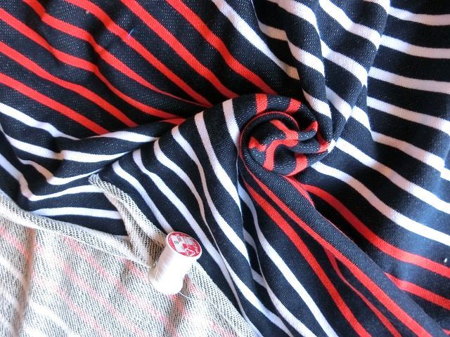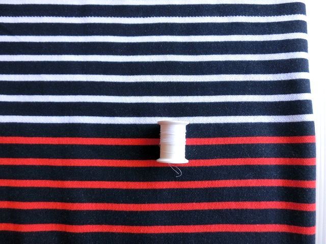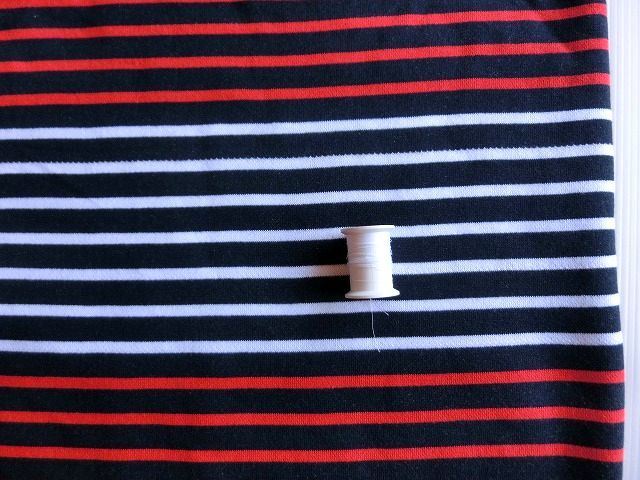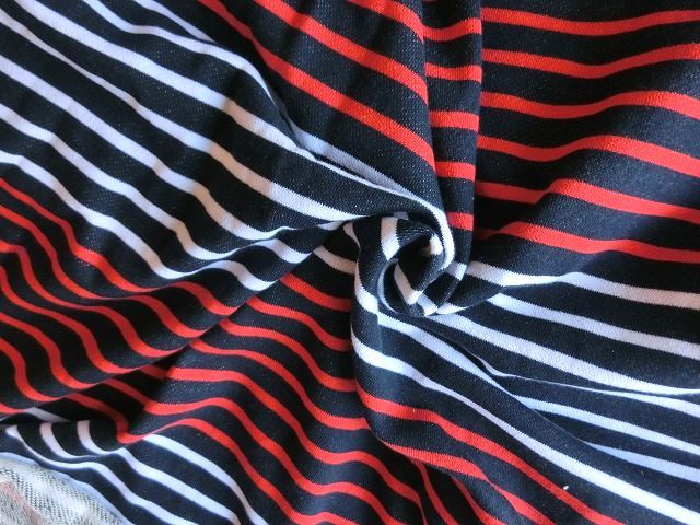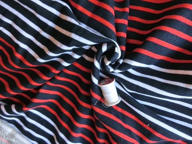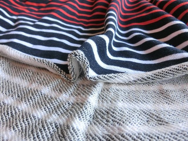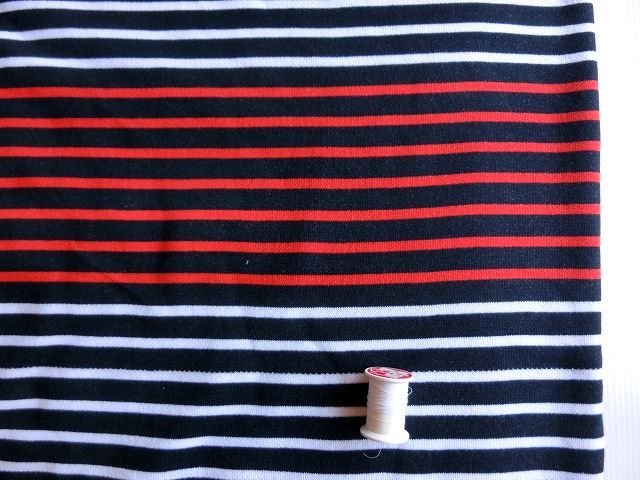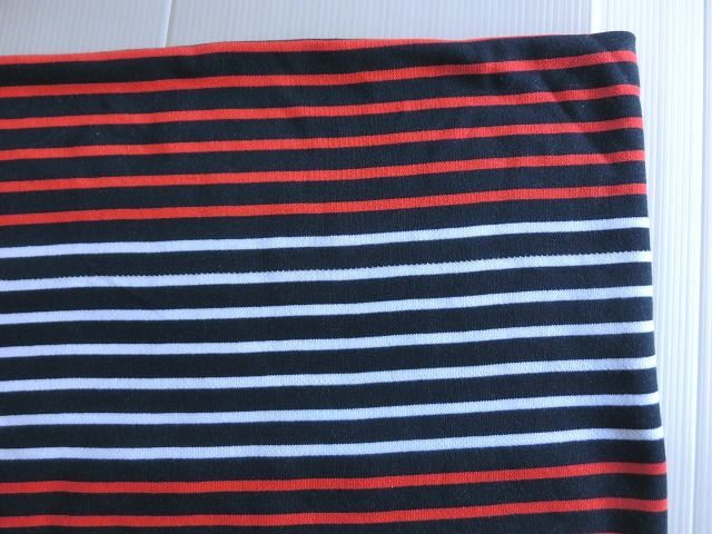 | ◆紺ネイビー×白赤トリコロールボーダートレーナー裏毛ニット生地*195広巾 | |||