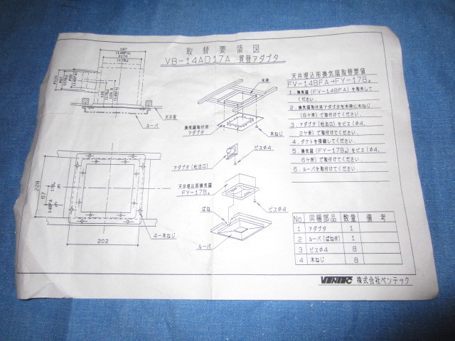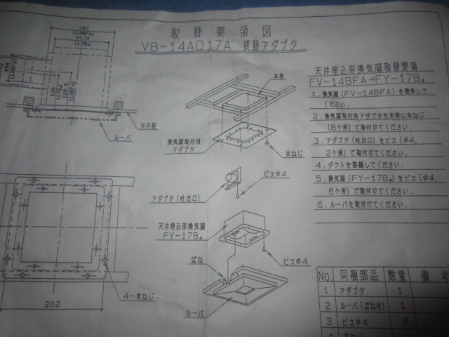 未使用 長期保管品 VB-14AD17A 買替アダプタ(枠)のみ 天井埋込形換気扇用