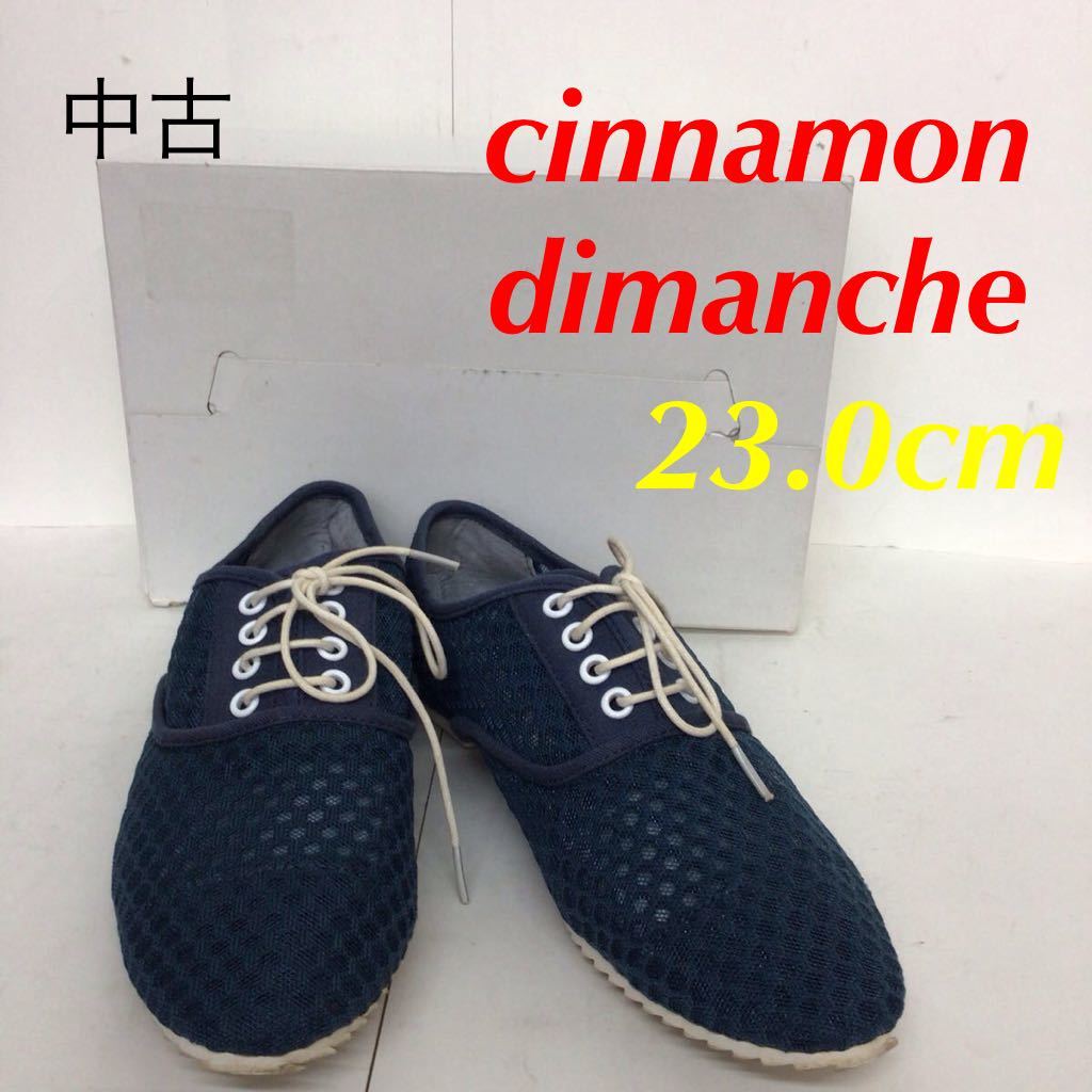 【売り切り!送料無料!】A-333 cinnamon dimanche!スニーカー!メッシュ!23.0cm!ネイビー!紺色!レディースシューズ!中古