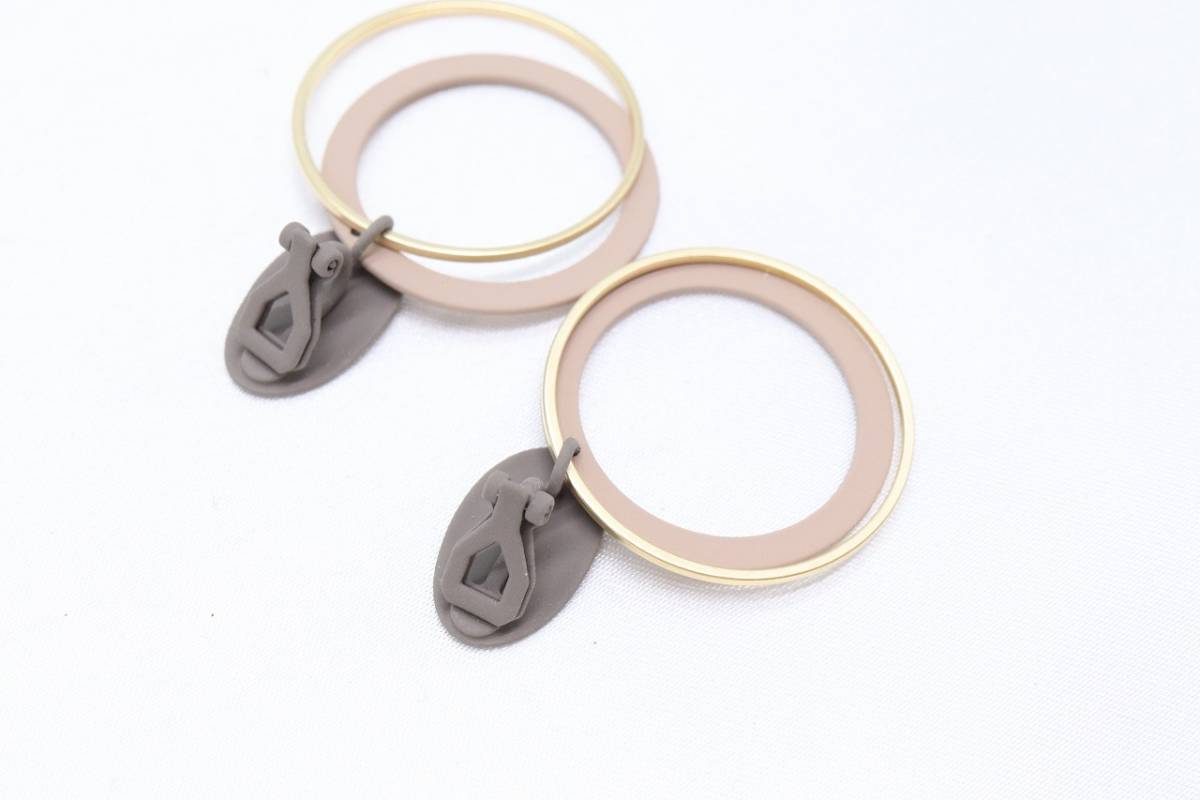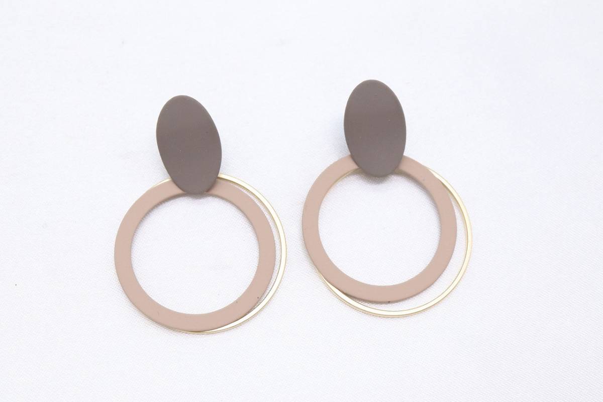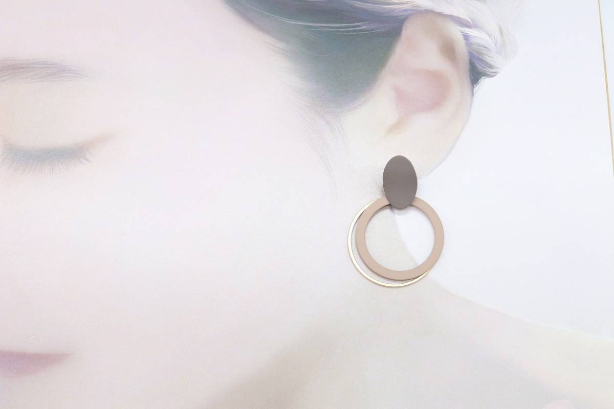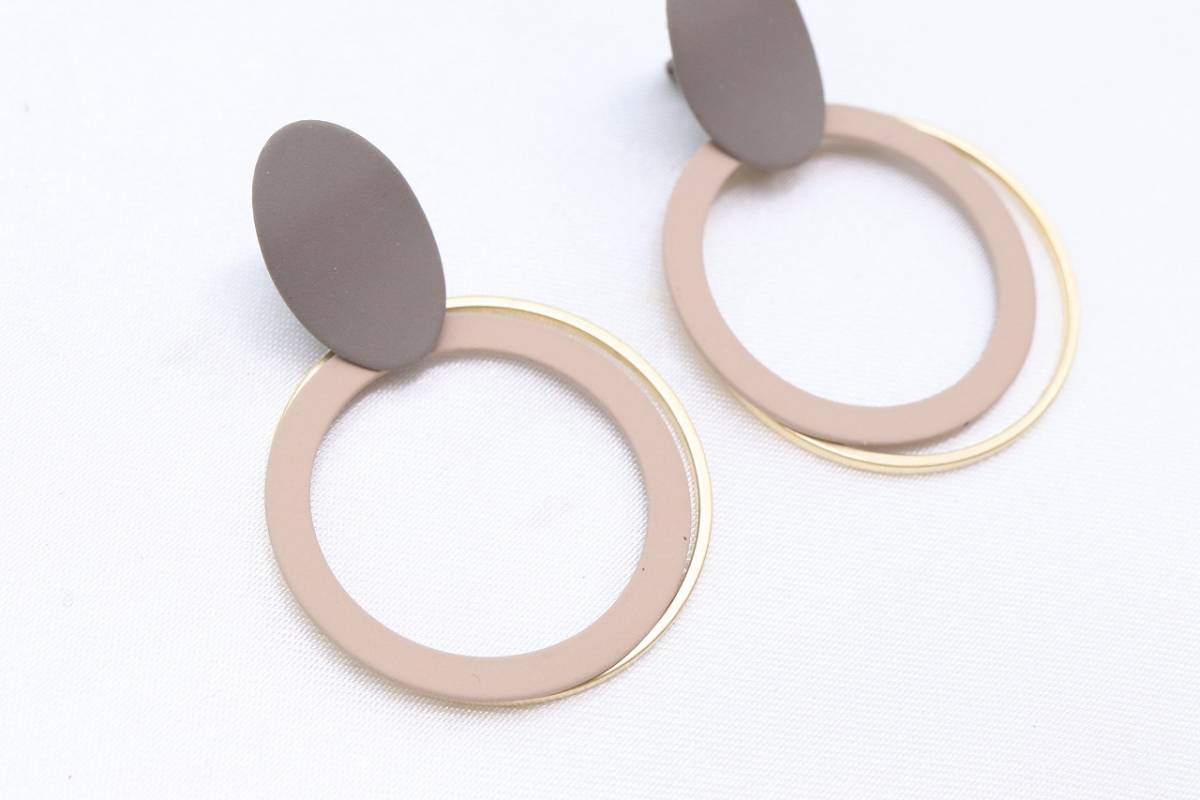 【HU538】フープ モチーフ バイカラー イヤリング グレージュ×ベージュ 未使用保管品【送料全国一律185円】
