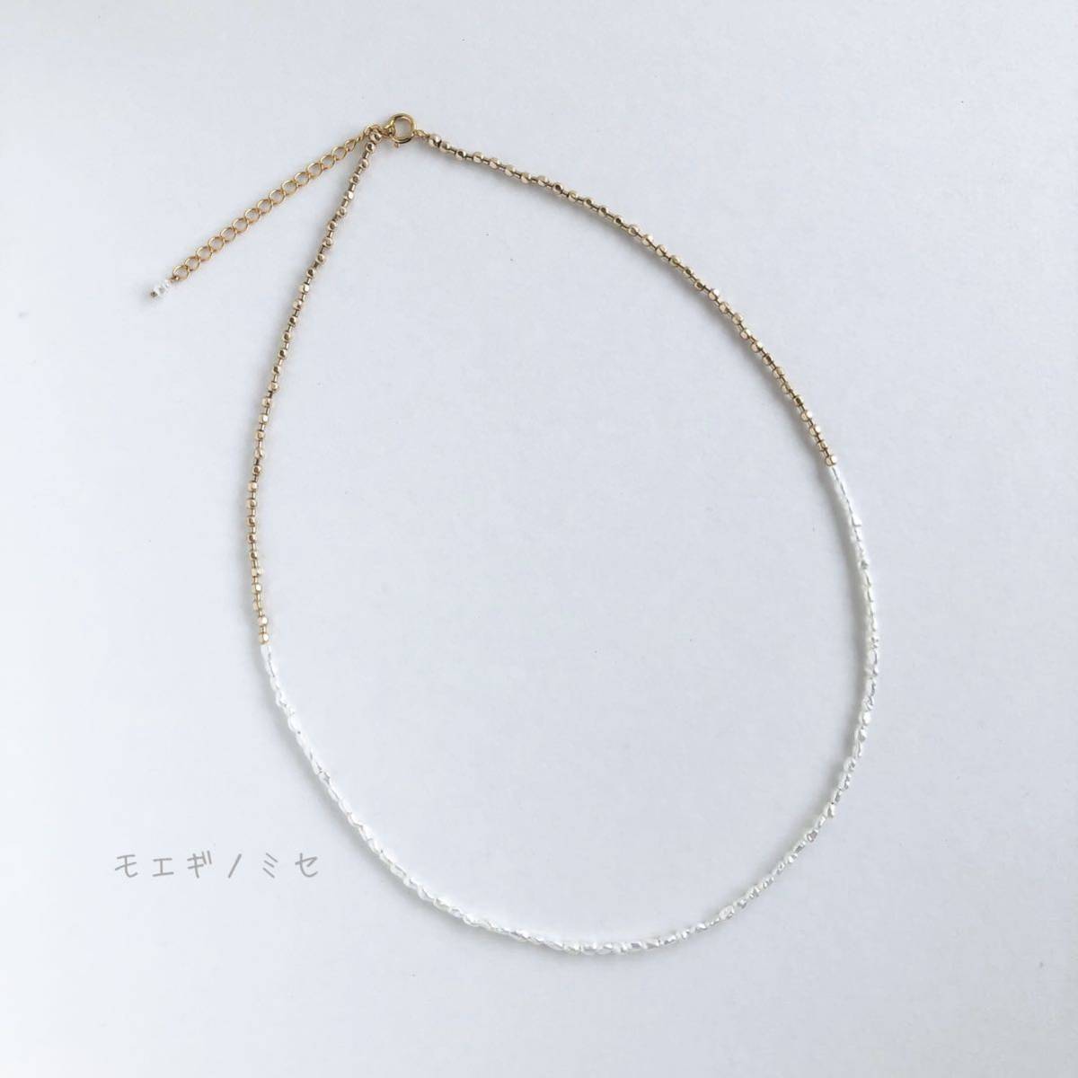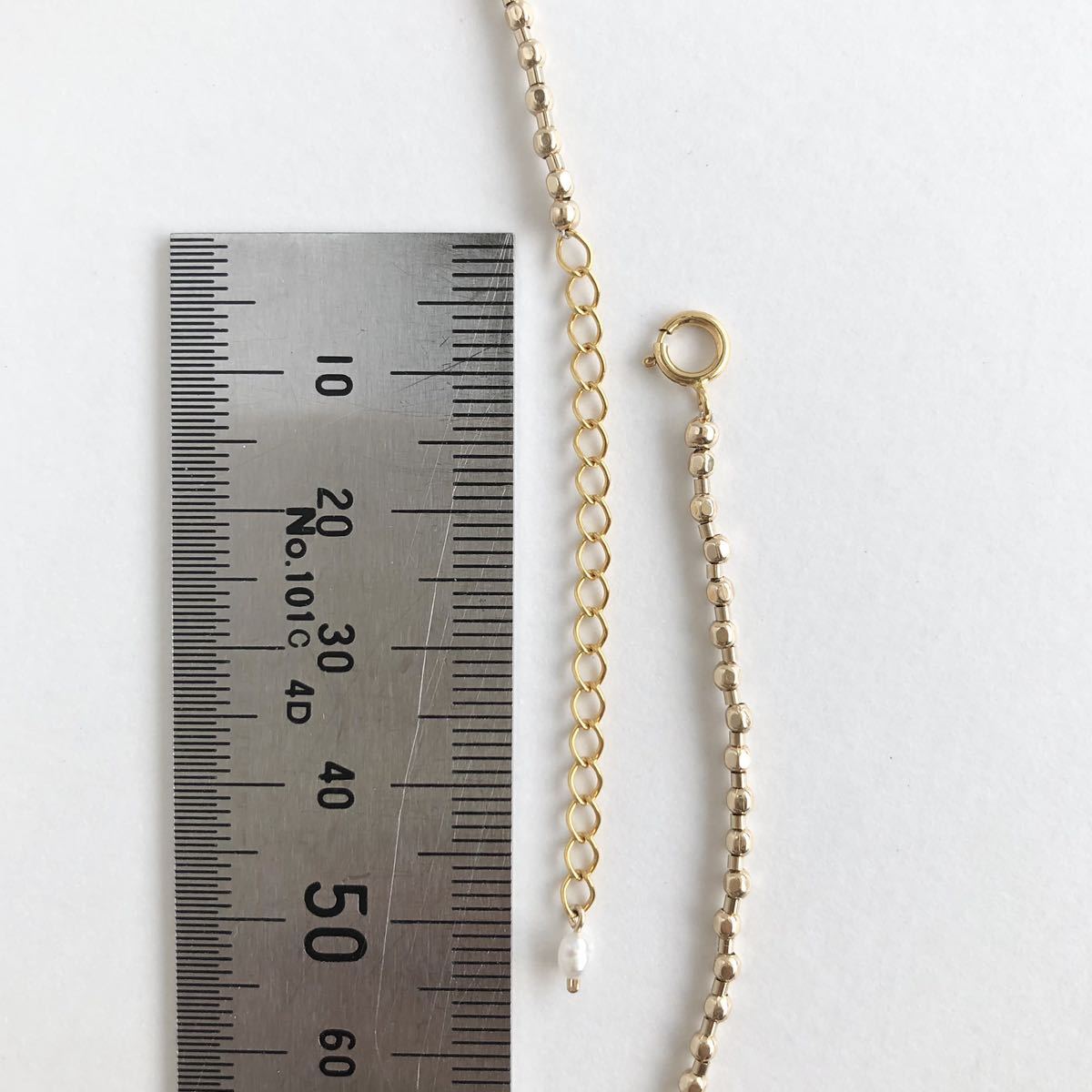 2mmビーズ以外の留め具やアジャスターなど、金色の部分は全て14金ゴールドフィルド(14kgf)です。