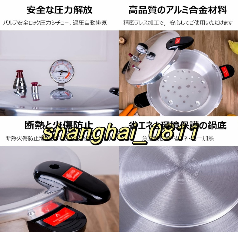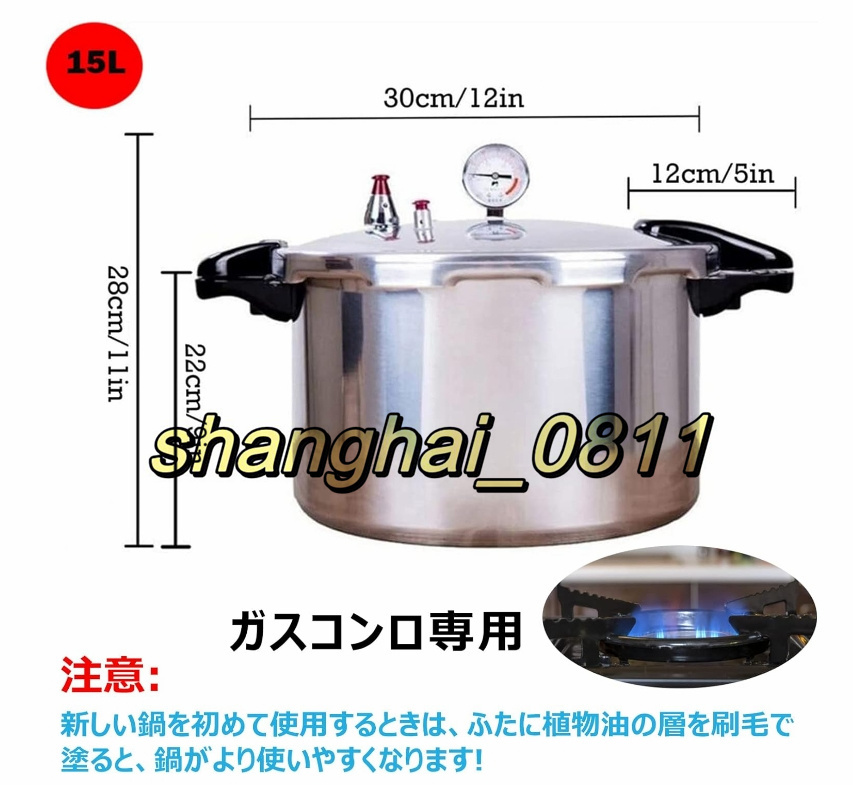 圧力鍋 業務用 15L アルミ合金 ガスコンロ用圧力鍋 超高圧で省エネ 気密性が高く調理器具 時短 大容量安全ロック機能 圧力計付き U438