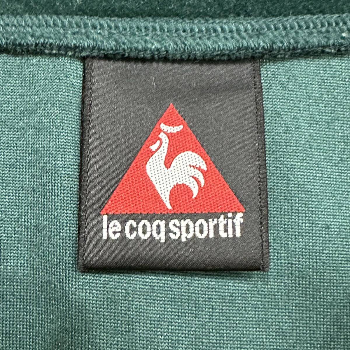 LECOQ SPORTIF (ルコック) ロゴ 刺繍 サイドライン 長袖トラックトップ ベロア ジャージ 緑黄  M