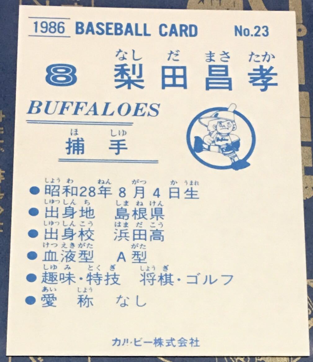 1986年カルビー 梨田昌孝 近鉄バファローズ No.23になります。