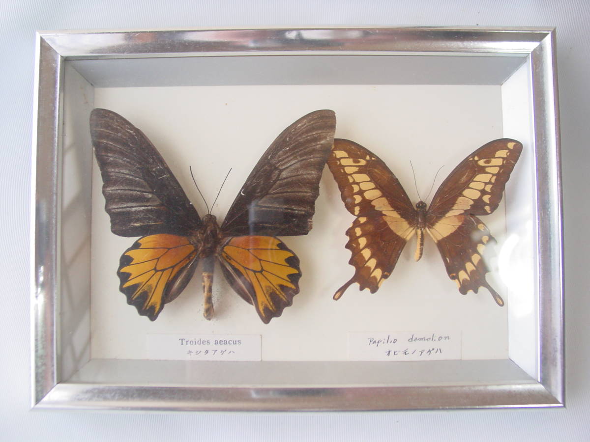 蝶2頭の標本「シタアゲハ」と「オビモノアゲハ」になります。