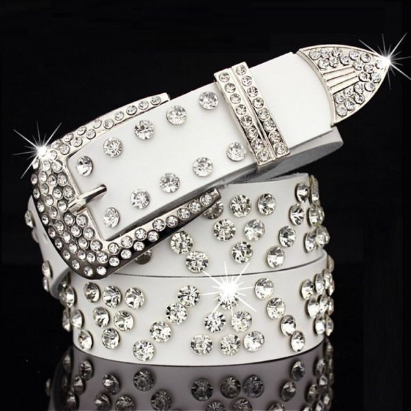 ベルト【j25】 ラインストーンベルト キラキラ スタッズベルト パンク クリスタル 白 レディース 調整可能 PUレザー ジーンズ 2