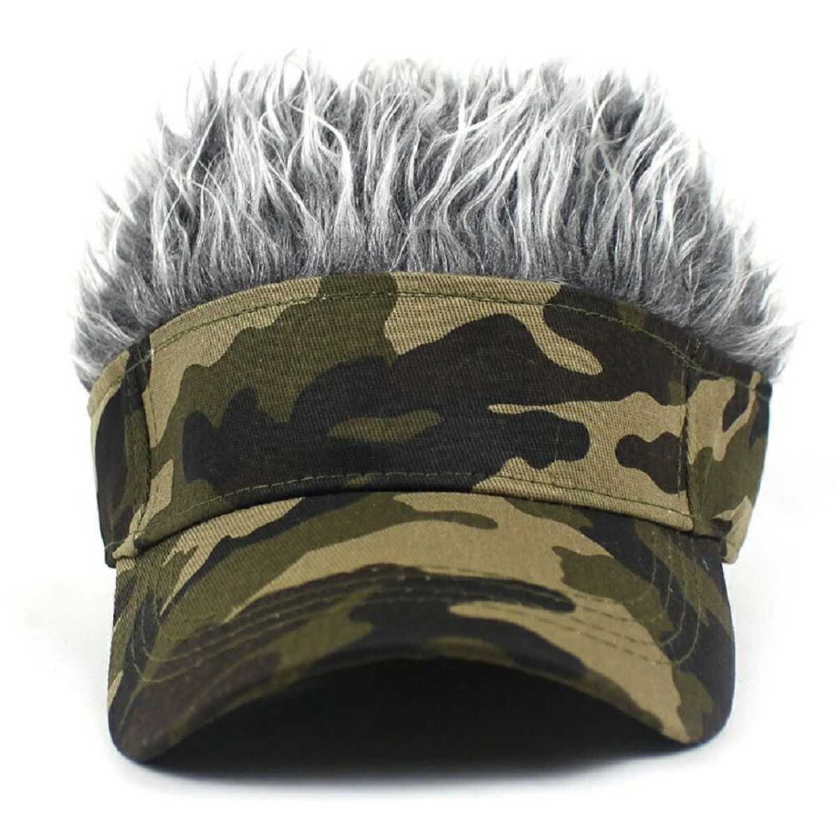 サンバイザー 帽子 迷彩 シルバーヘアー フレアバイザー かつら ウィッグ メンズ ヘア バイザー 髪の毛 ゴルフ アウトドア 2780