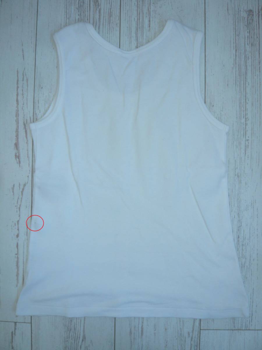 ◆状態 ユーズド品 左脇腹 小汚れあり ◆表記サイズ 「不明」 ◆実寸 着丈47㎝ 肩幅27㎝ 身幅35㎝ ◆カラー ホワイト(白) ◆素材 綿100% ◆原産国 日本製 ◆キャミソール、ノースリーブ、しまむら、ユニクロ、無印、GAP 程度ランク 「D」 程度のランク評価について A 新品・未使用品。タグや付属品が付いているものもあり B 試着や、数回程度の使用。コンディションは全体的に非常に良い C あまり使用していないので、コンディション全体的にかなり良い D 多少使用感はあるものの、コンディションは全体的にまあまあ良好 E 使用感はありますが、通常の使用で支障のないレベル F 若干の難あり。オフタイムの使用や、細かい点を気にされない方にお勧め G 難有り品。コンディションの問題をご理解いただける方に、格安で! (注)USED品への入札は、使用感をご了承の上、お願い致します 。 | |||