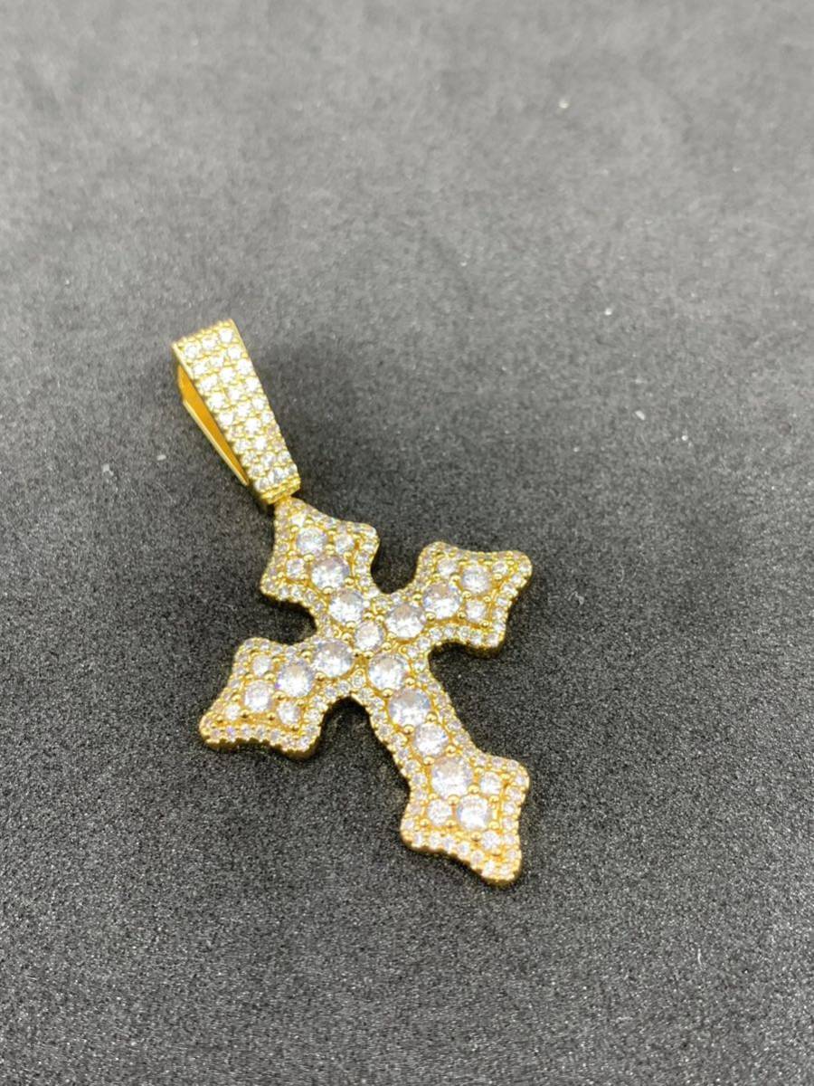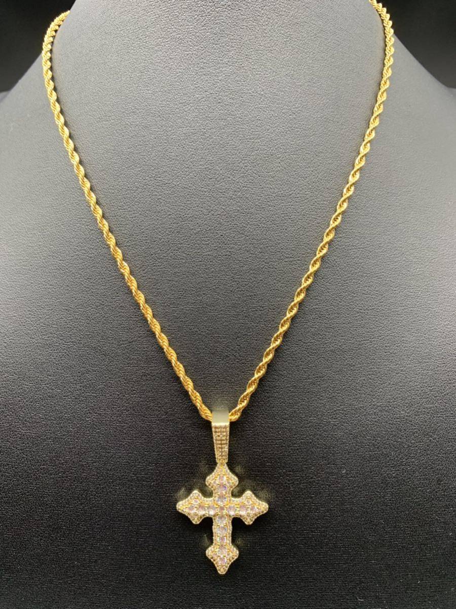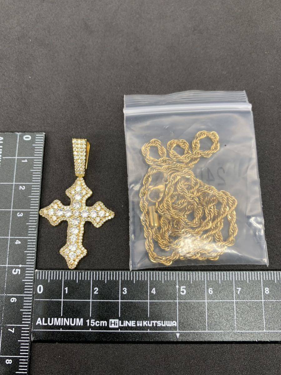 お洒落なデザインの十字架 に配列されたジルコニアと縁を飾るジルコニアが綺麗なネックレスです。