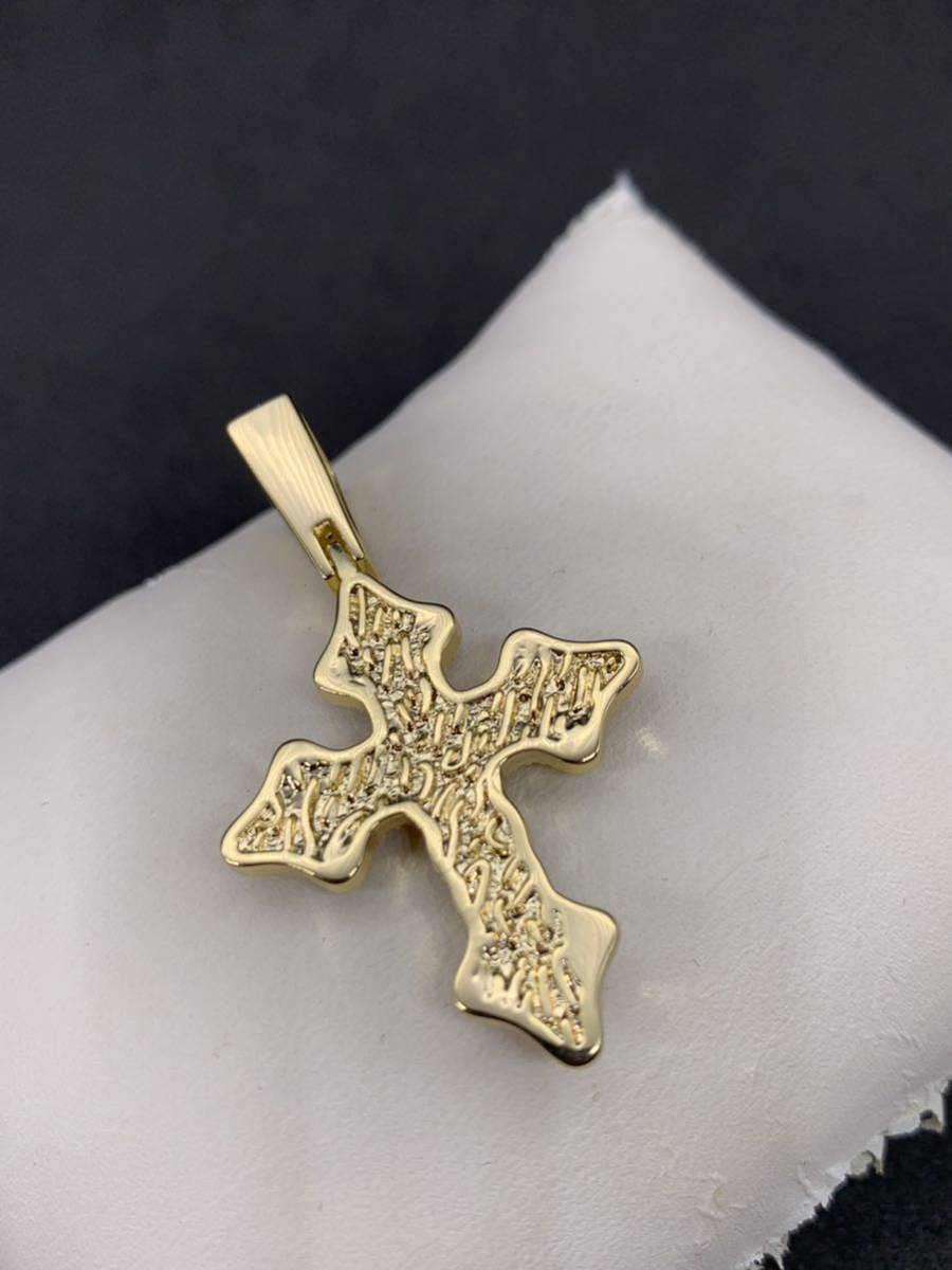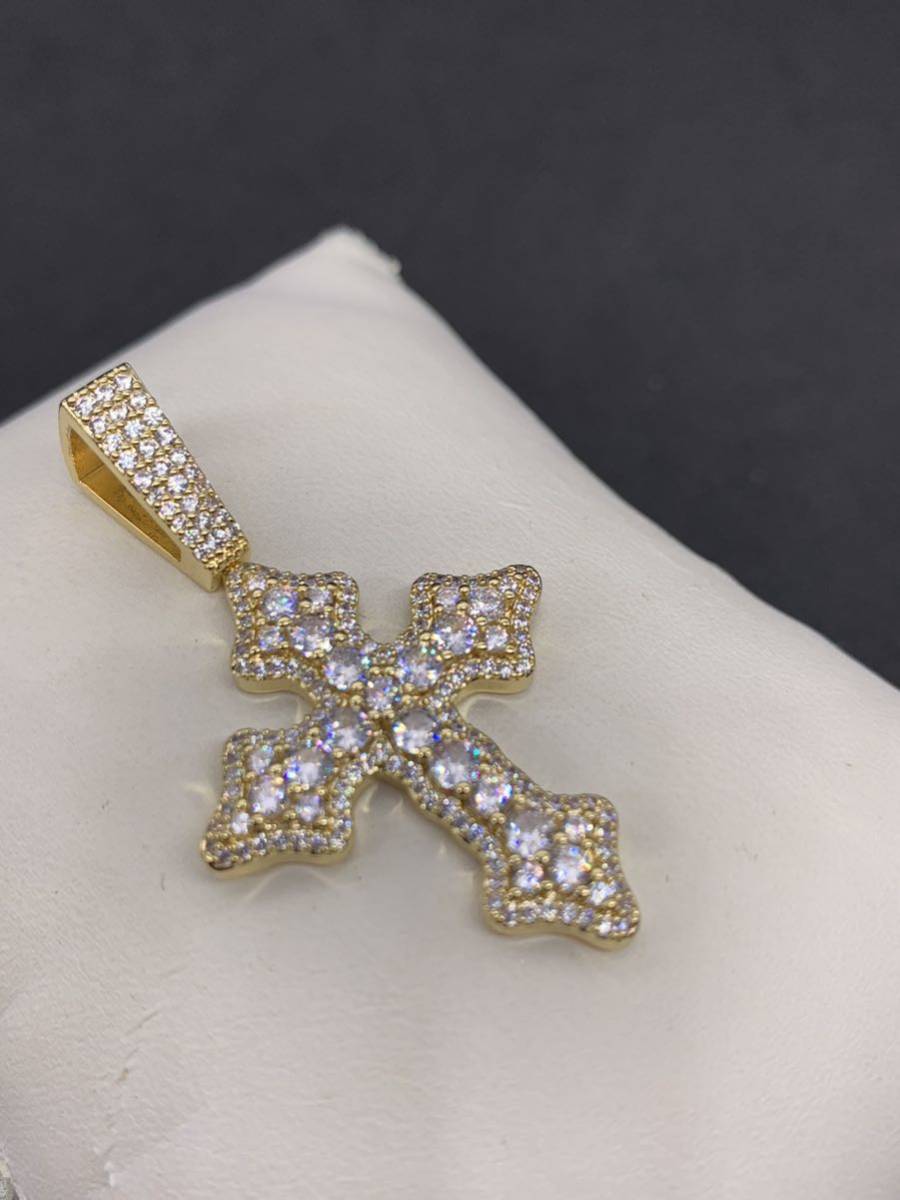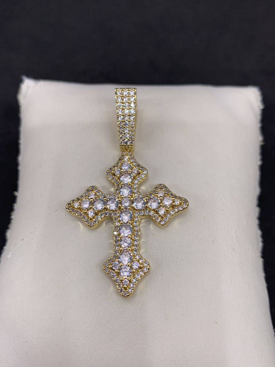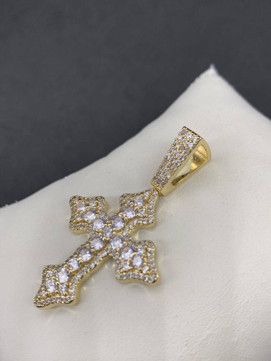 お洒落なデザインの十字架 に配列されたジルコニアと縁を飾るジルコニアが綺麗なネックレスです。
