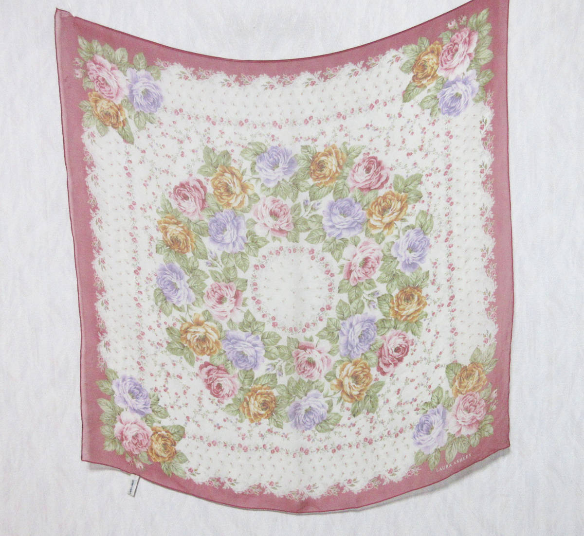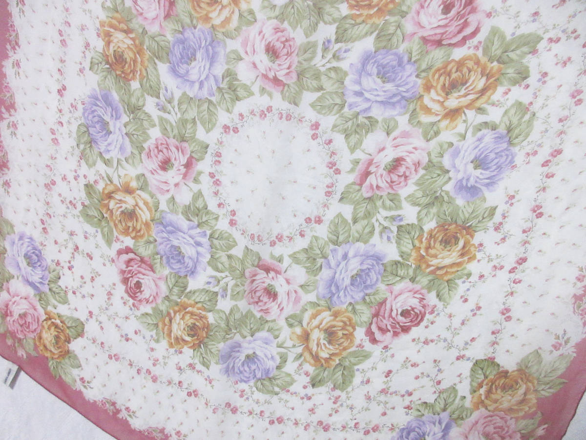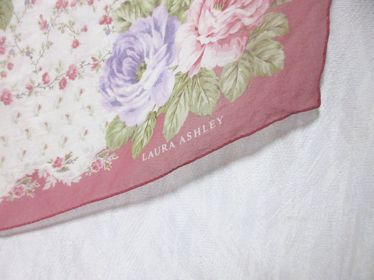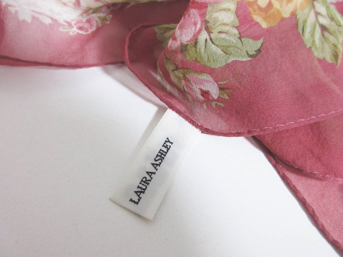 ローラアシュレイ LAURA ASHLEY シルク100% 薄手 スカーフ irmri 亥3818