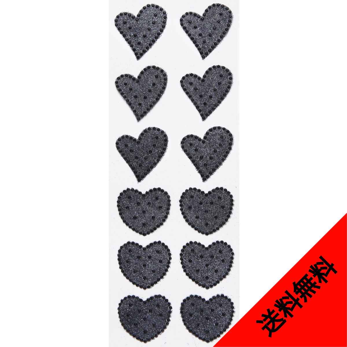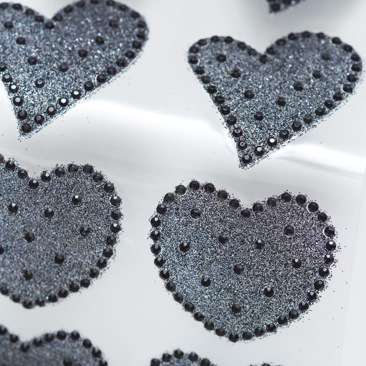 ブラックのラインストーンを配列したハートのデザインのステッカーです。