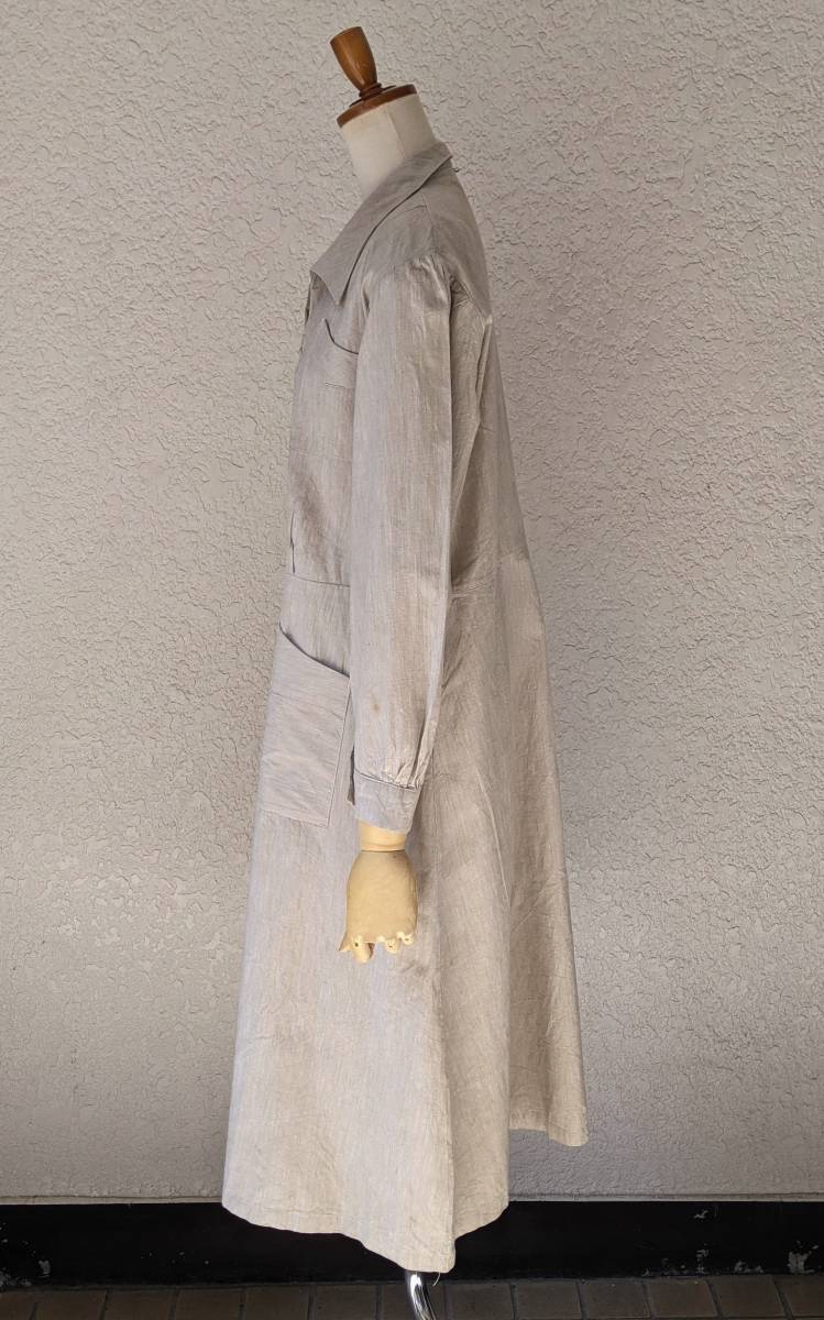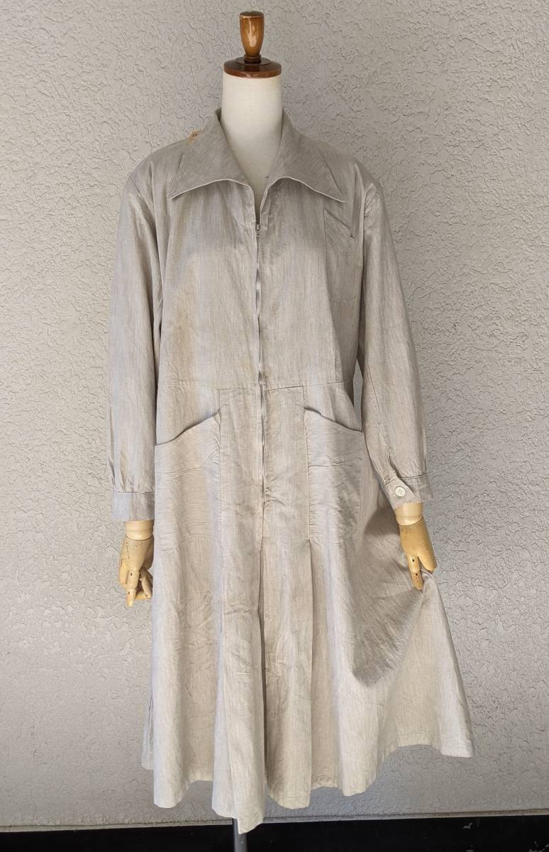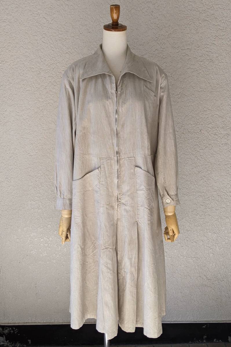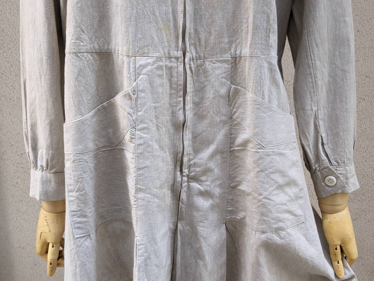 アトリエコートによく似たハーフジップ仕様のワンピースで、当時の女性用作業着の類いかと思われます