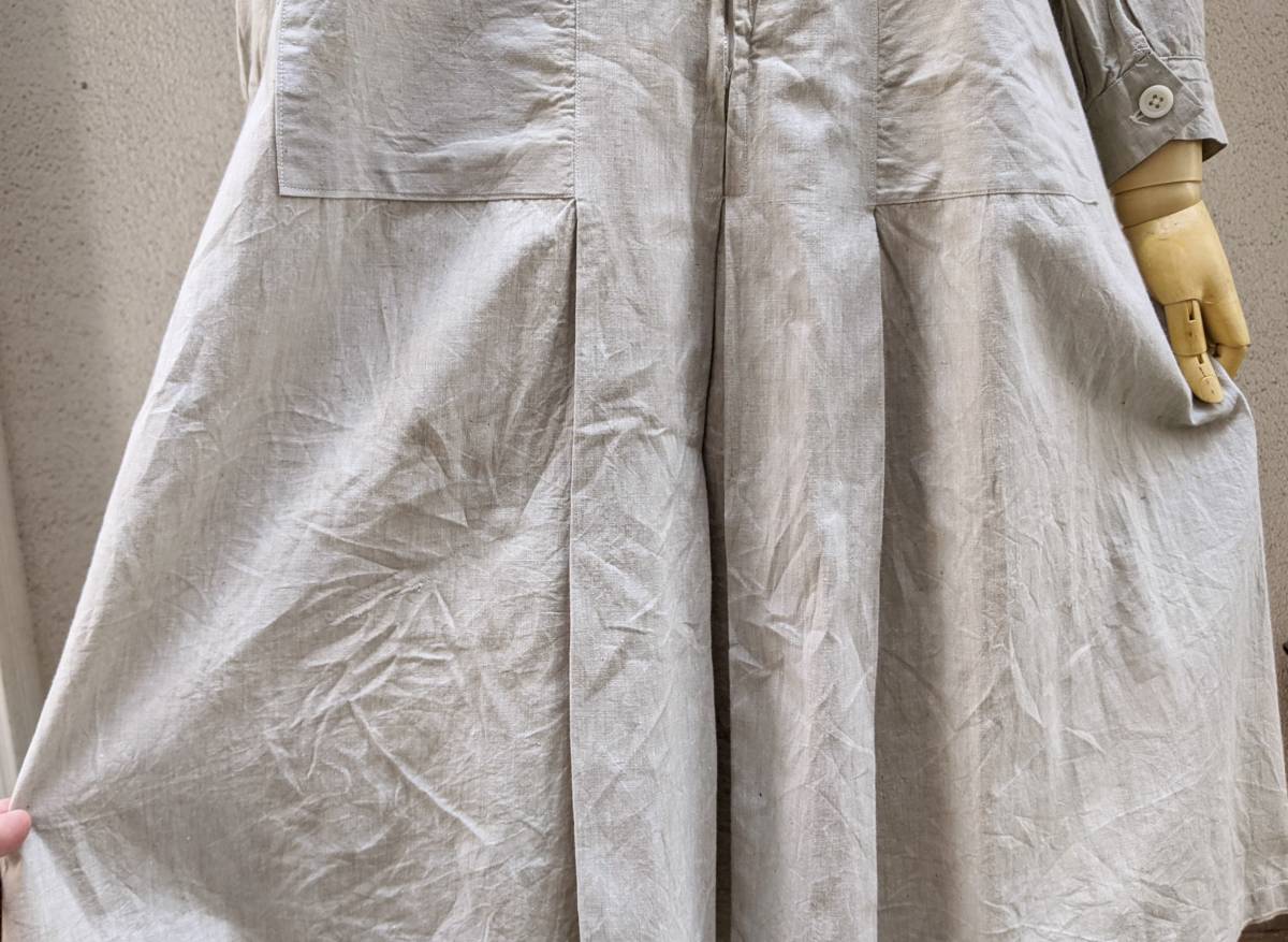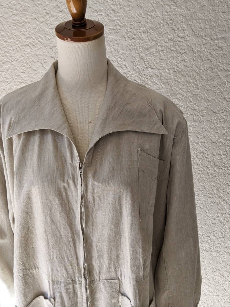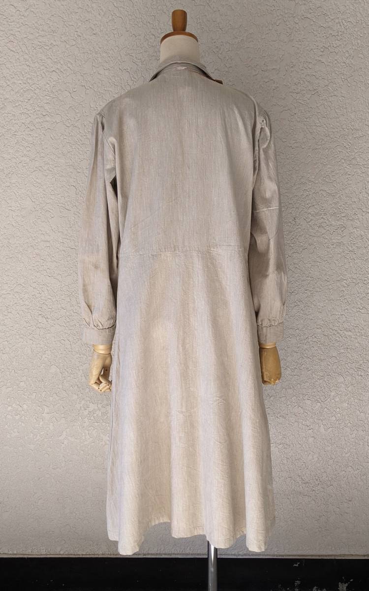 アトリエコートによく似たハーフジップ仕様のワンピースで、当時の女性用作業着の類いかと思われます