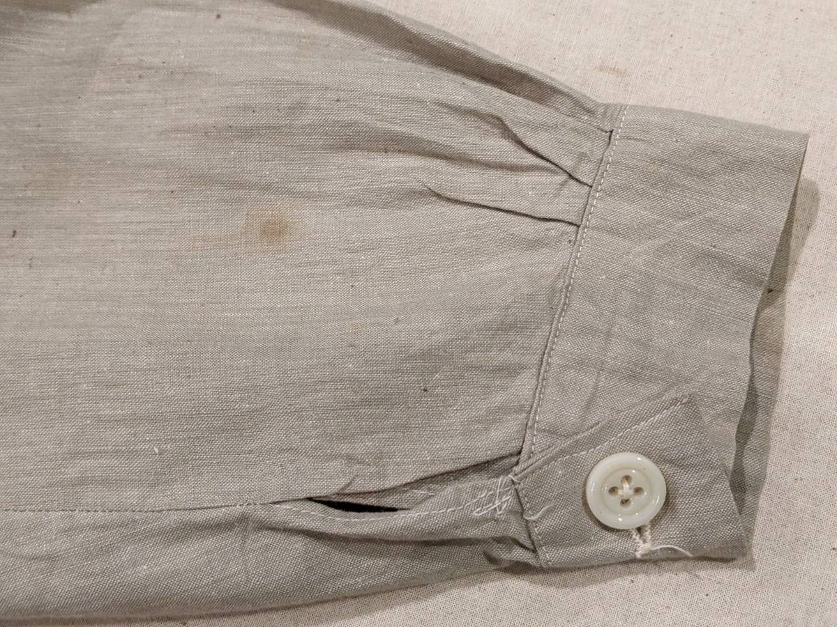 斜めにカットされたポケット口やフロント裾の箱ひだなど、戦前らしいディテールが詰まっております