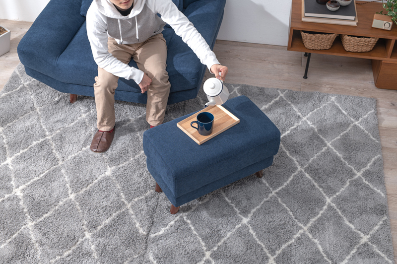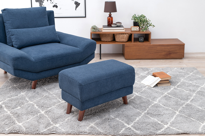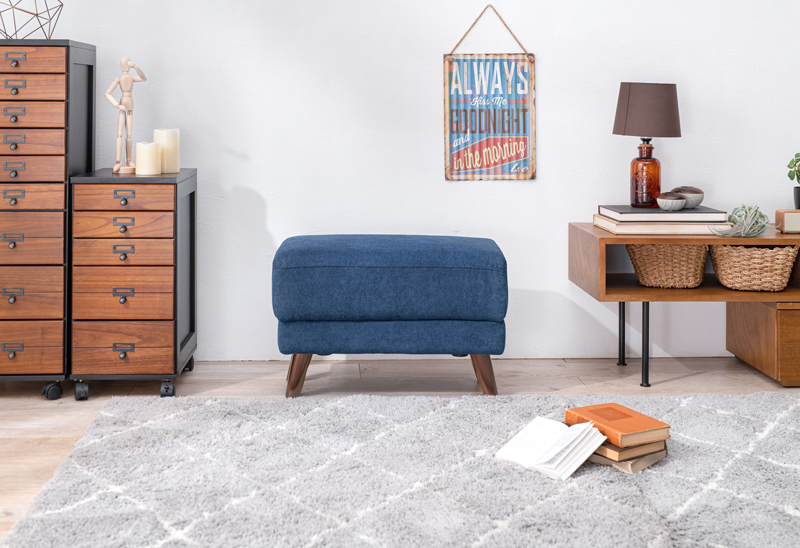 1台で何役もこなす、使い勝手の良いオットマンです。足を乗せるだけでなく、トレーを置けばちょっとしたサイドテーブルに早変わり。