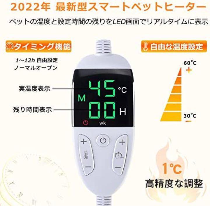 ペット用ホットマット温度調整するサーモスタットが内蔵されており、ペットヒーターが適温に保たれ、無駄な電力をカットします。設定した温度に達ち・過熱・電圧異常の場合は自動的に電源を切ります。また、過熱保護機能が付いているので、ペットが火傷などせず安心してご使用頂けます。電源コードはラセン管付きで噛み付きから守る耐久性のあるコードです。