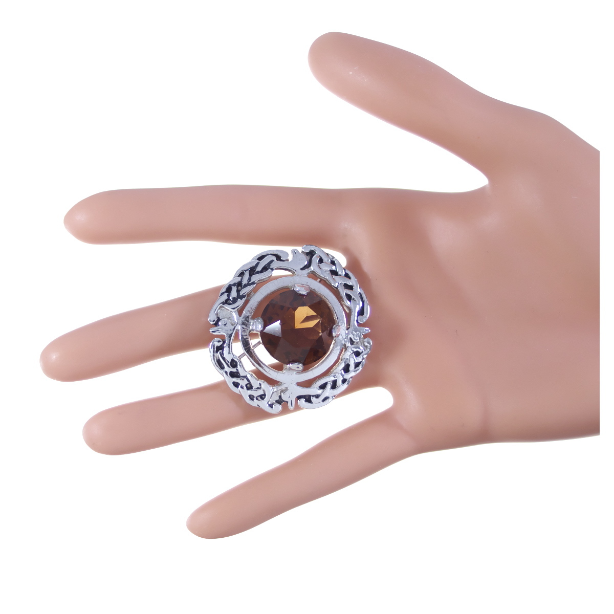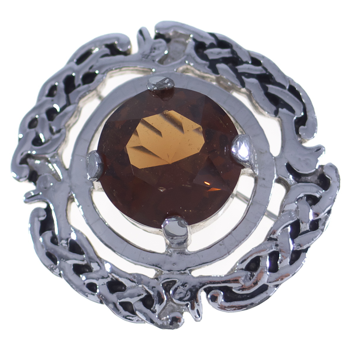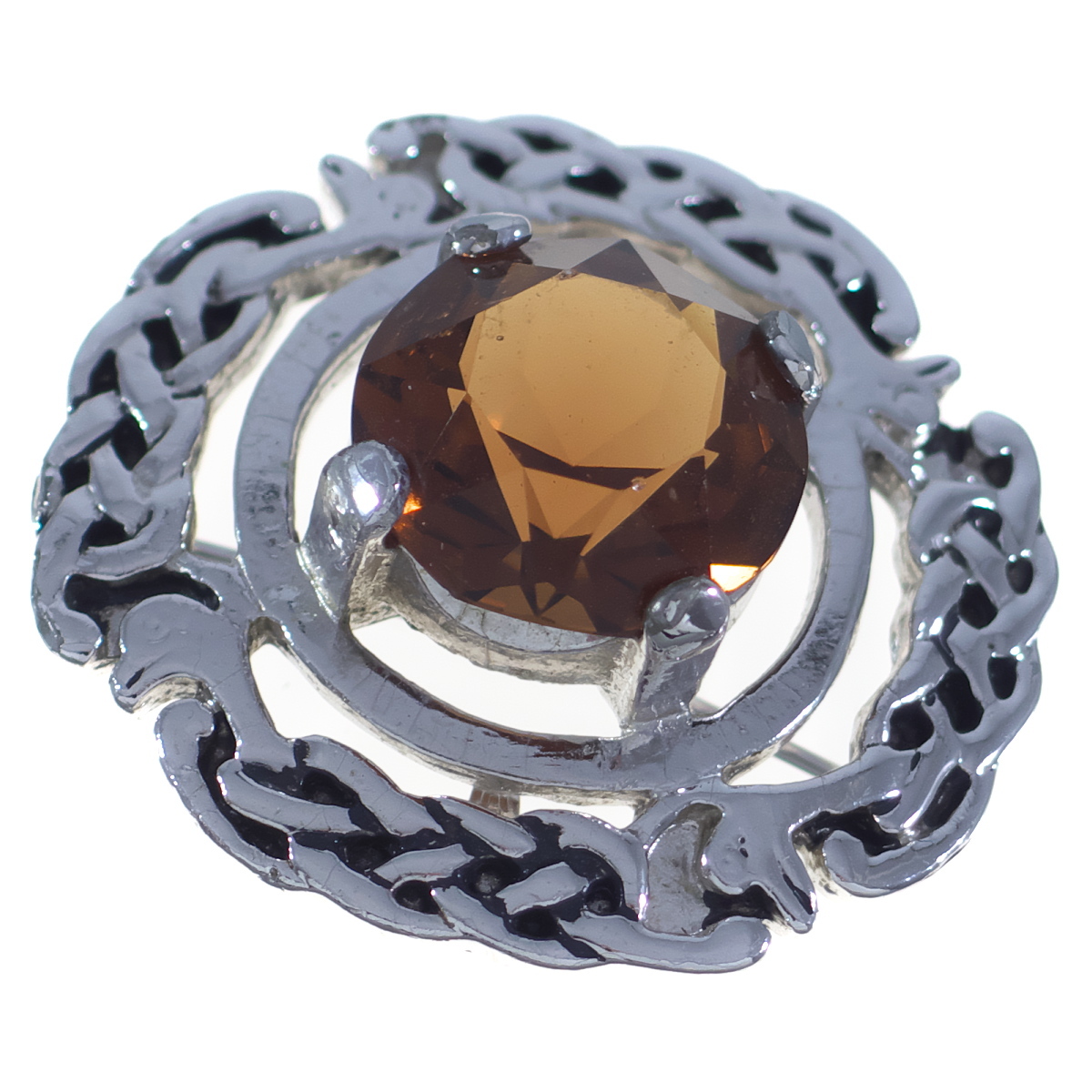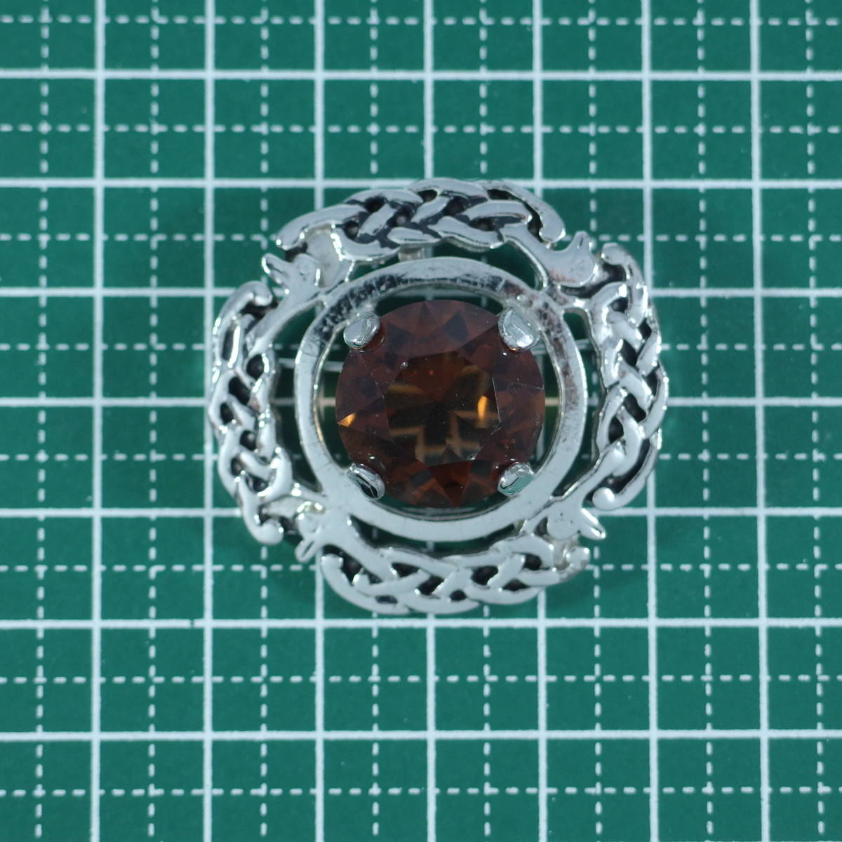 UK1244◆【SCOTLAND DB】◆ ケルトノット ブラウン系ストーン DAWSON BOWMAN バイキング ◆ ヴィンテージブローチ ペンダント兼用 ◆