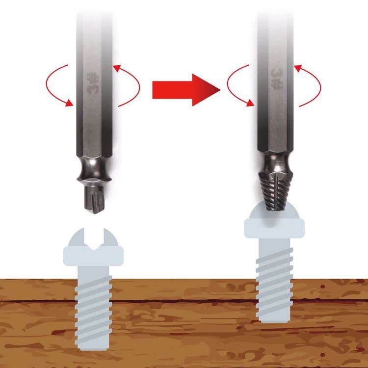 穴つぶれ 潰れたネジにドリル部分で穴を作りネジ部でゆっくり引きぬくだけ