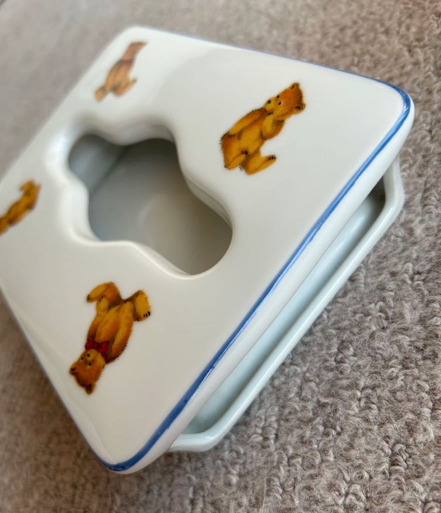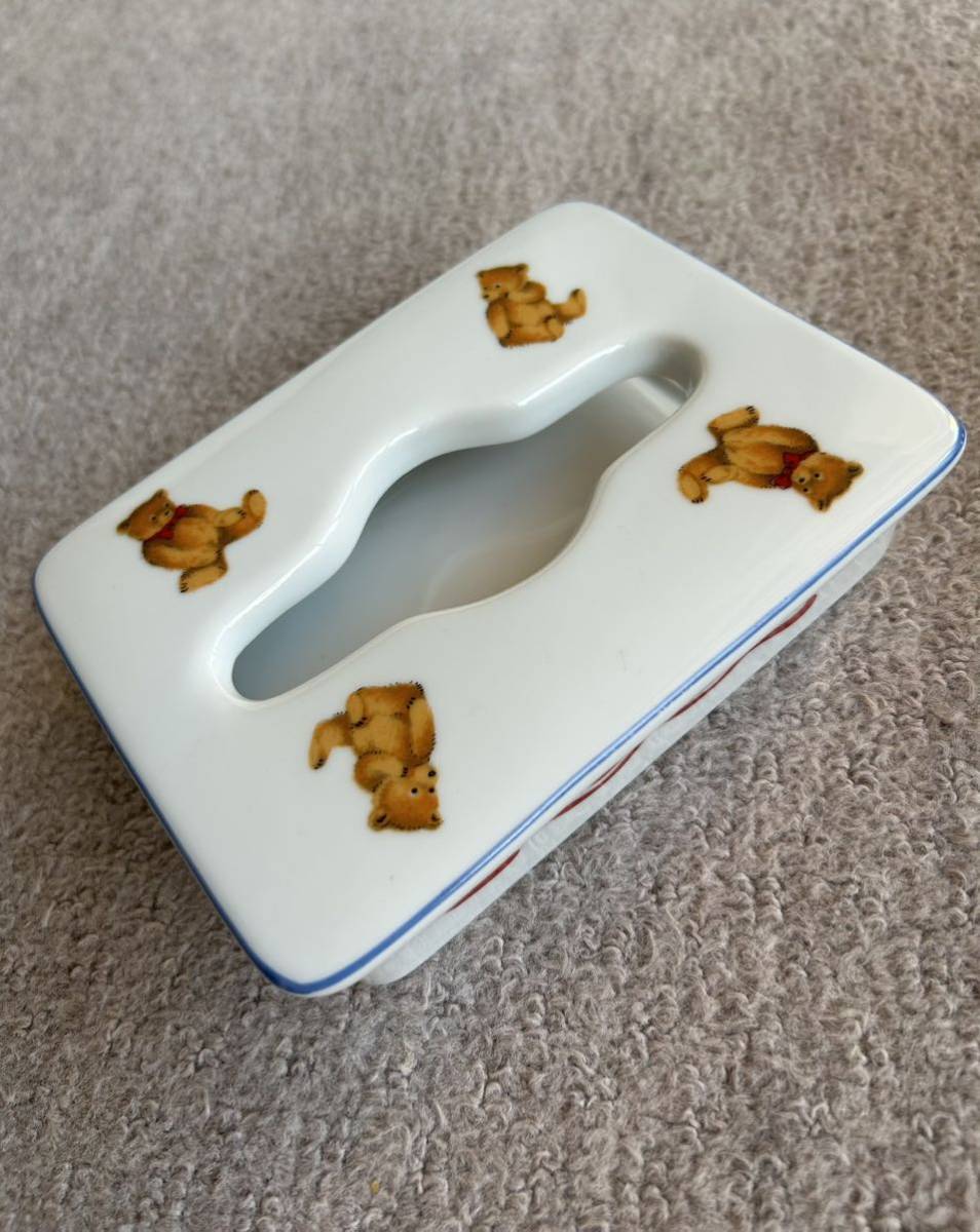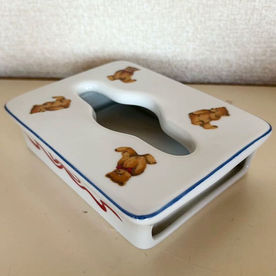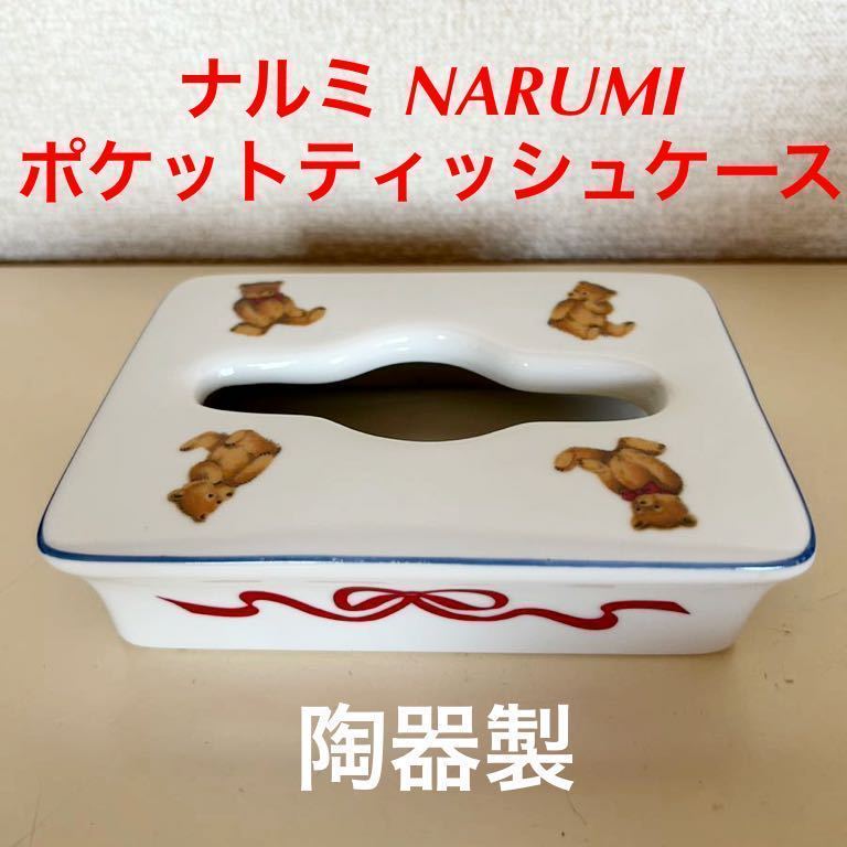 送料無料 即決 ナルミ NARUMI 陶器製 ポケットティッシュケース テディベア柄 くま クマ リボン インテリア小物 陶器雑貨 ティッシュ入れ
