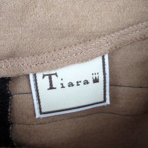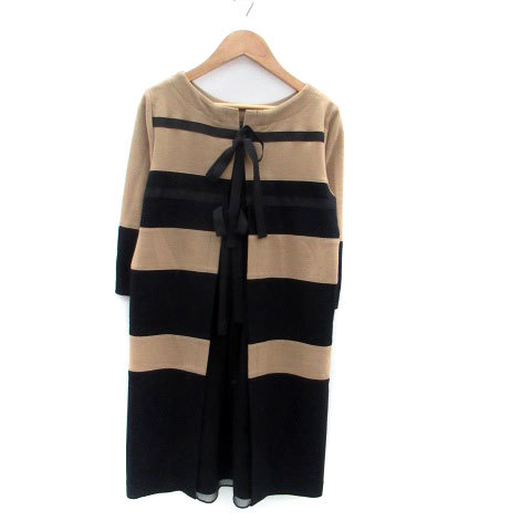 ティアラ Tiara ワンピース ラウンドネック 長袖 ミニ丈 ボーダー柄 ウール 2 茶色 ブラウン 黒 ブラック /HO38 レディース