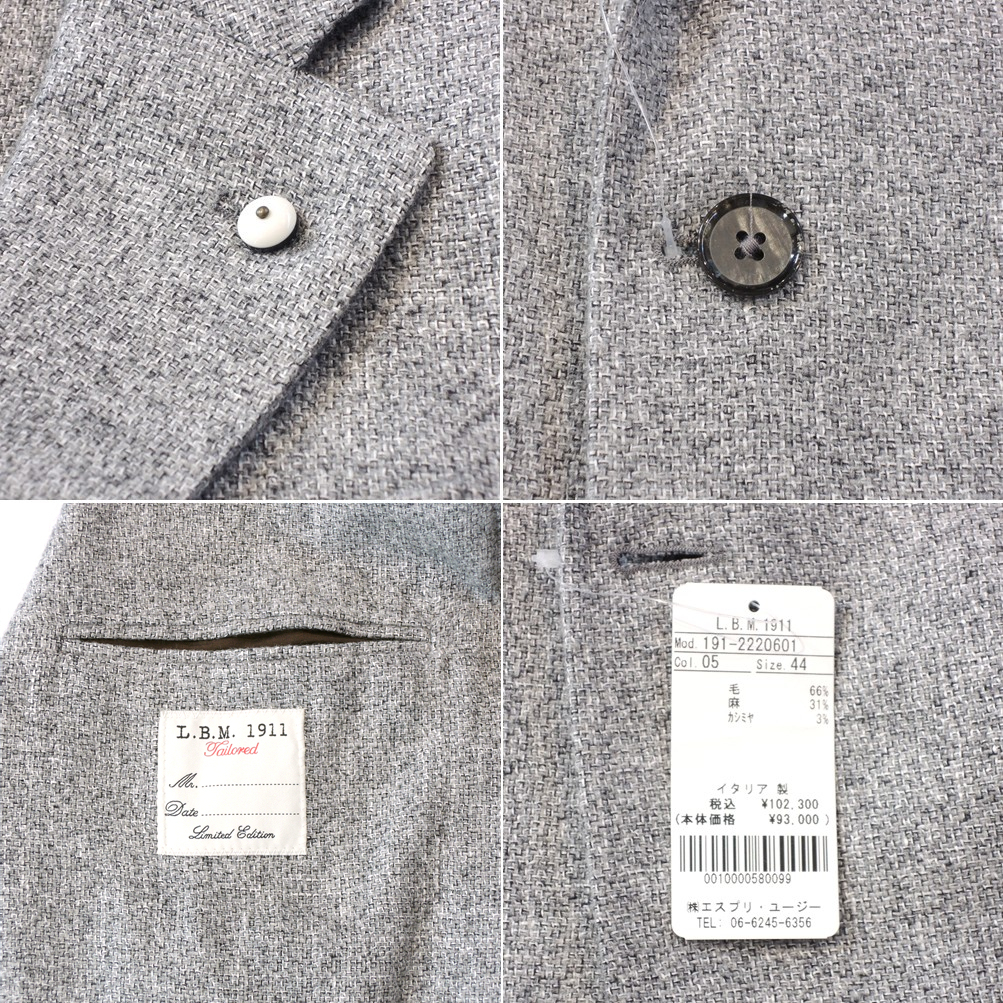 アイテム : シングル2Bジャケット モデル : JACK サイズ : 44C 素材 : 毛66% 麻31% カシミヤ3% 色・柄 : ライトグレー 無地 着用シーズン : 秋冬 状態 : 新品未使用 生産国 : イタリア製 定価 : ¥102,300 付属品 : 純正ハンガー | ||||