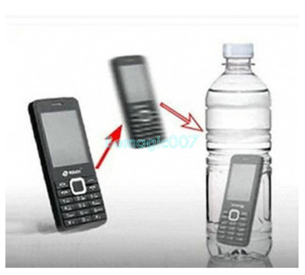 "術者は、空のペットボトルを取り出し、観客によく調べてもらいます。携帯電話をこのペットボトルに押し付けると、携帯電話がペットボトルの中に入ってしまいます。ペットボトルと携帯電話は観客から借りたものでも構いません。
