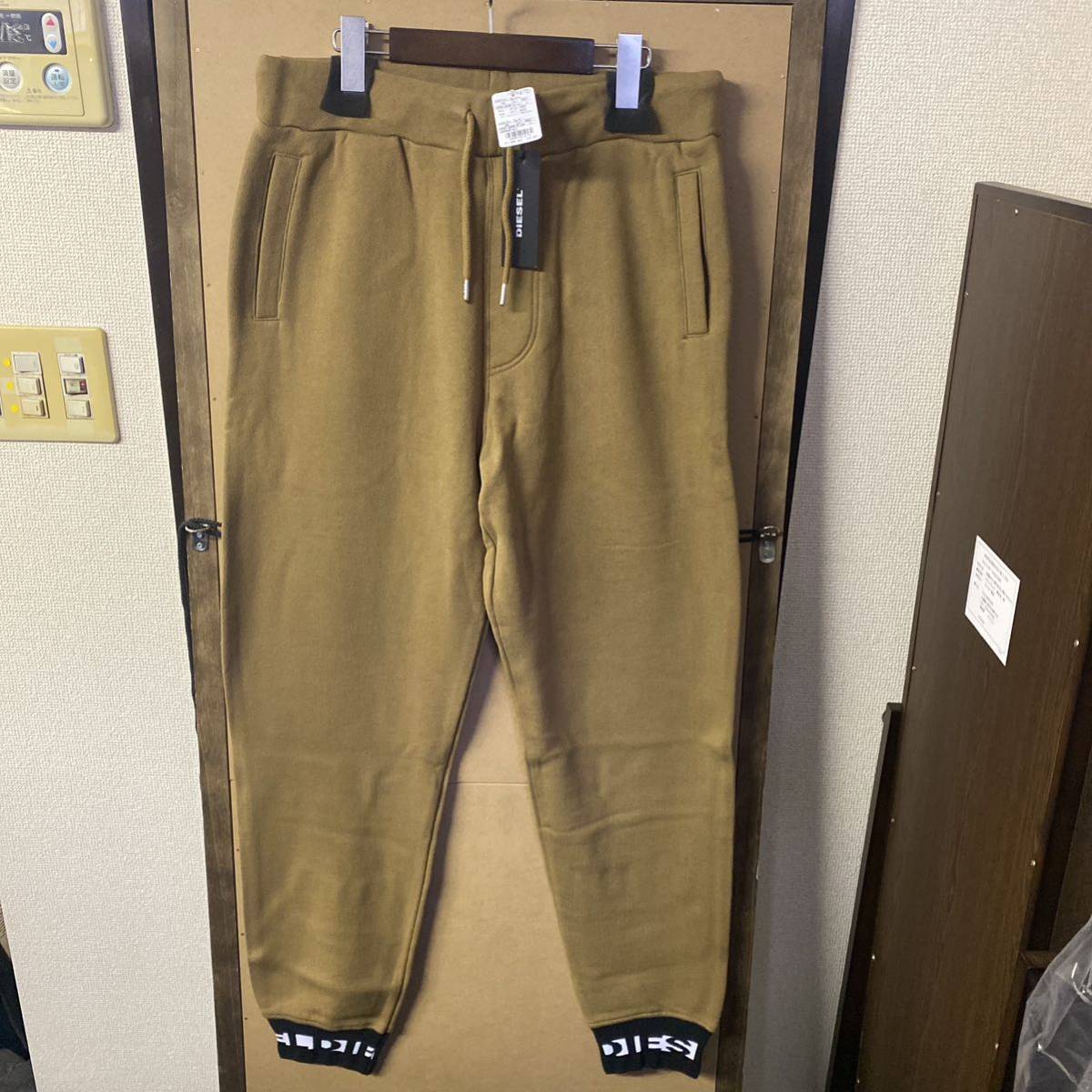 DIESELの裾ロゴ裏起毛スウェットパンツ。