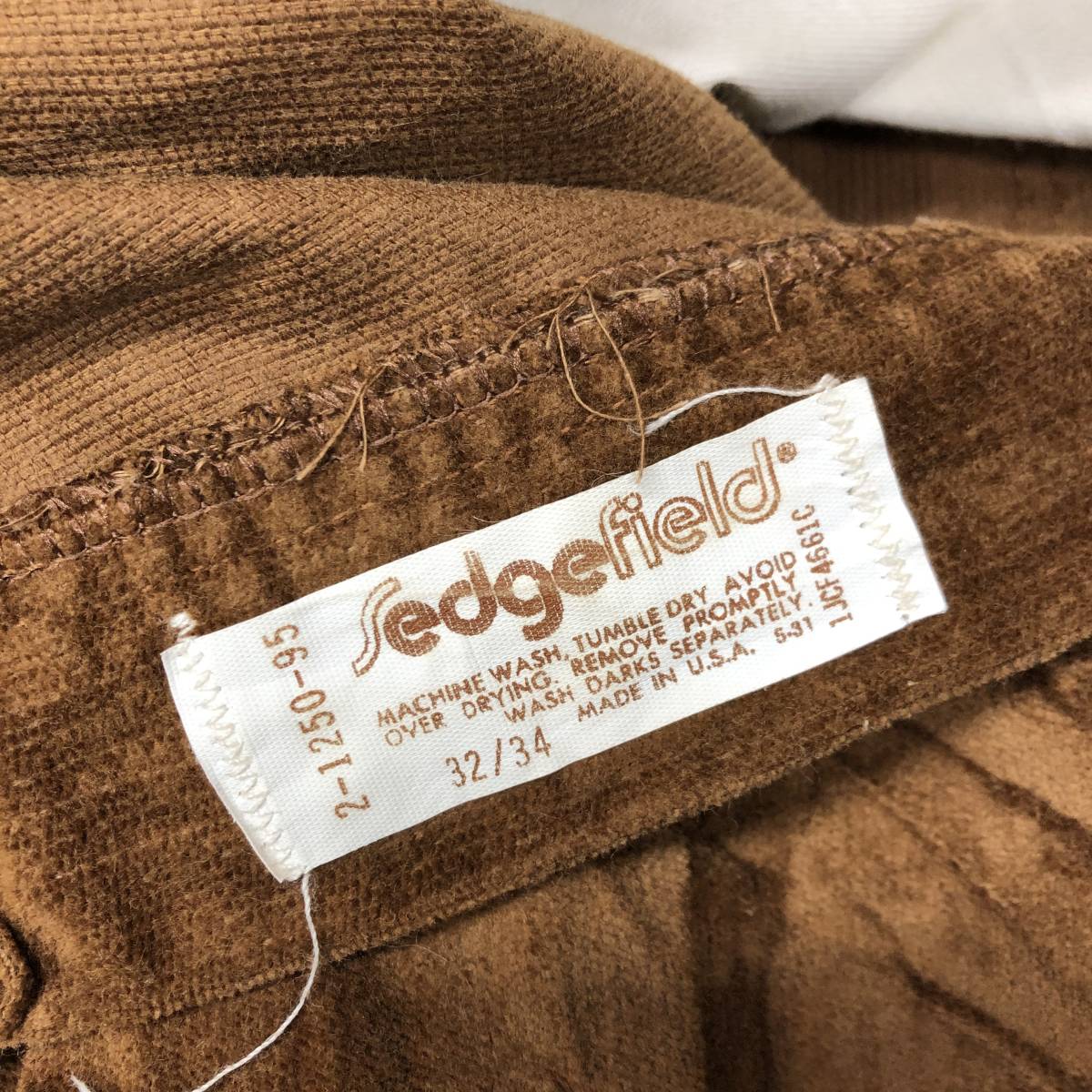 70s USA製 sedgefield セジフィールド ベロアパンツ W32 Talon ブラウン系の出品です。
