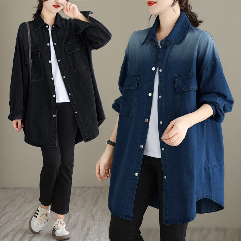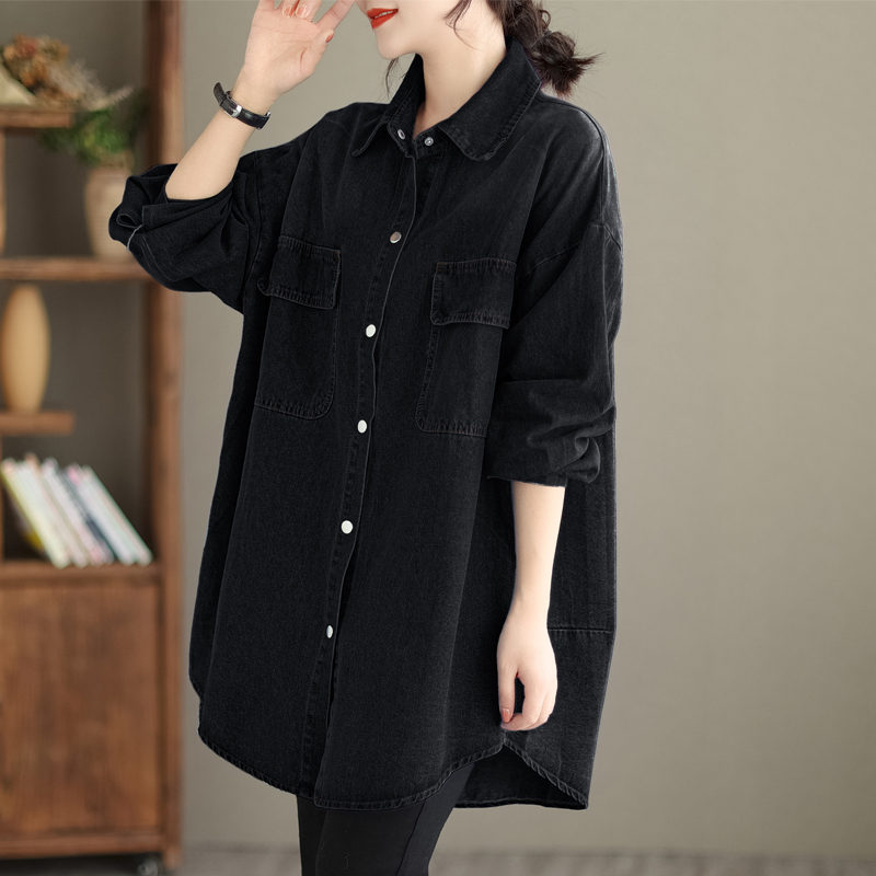 「同梱1万円送料無料」秋*新作*カジュアル*オシャレ*ゆったり大きいサイズ*配色*デニム*コート*長袖*ミモレ丈コート*F*ブラック