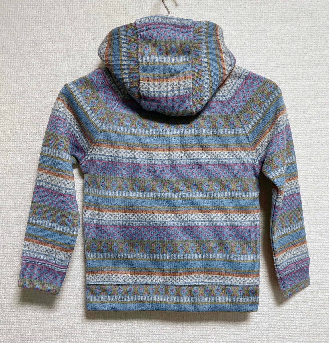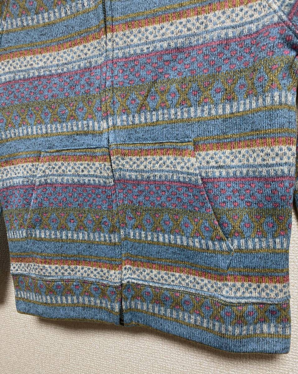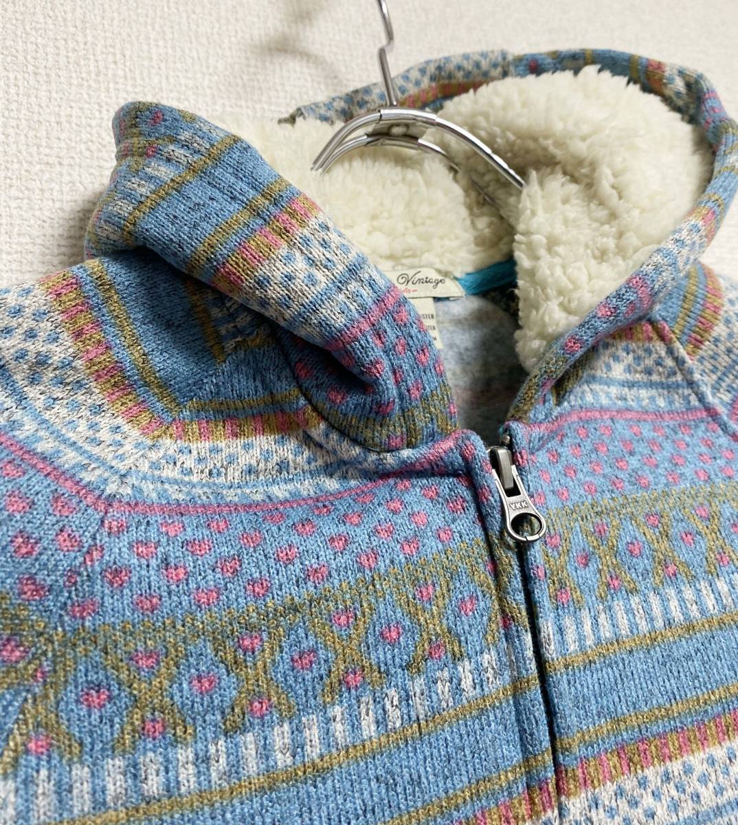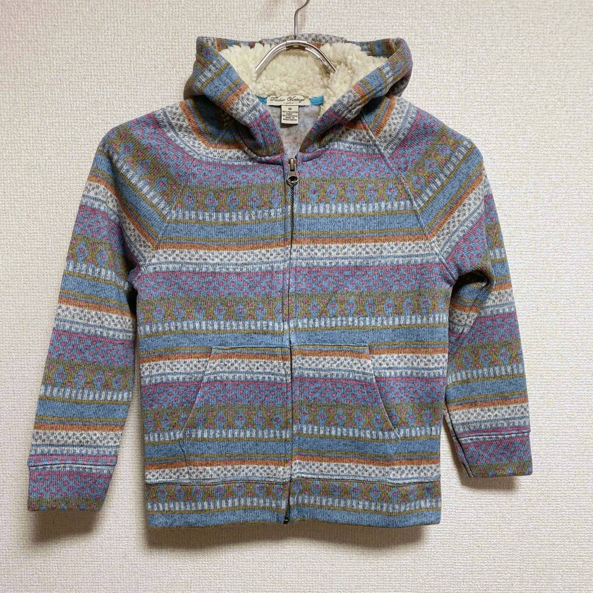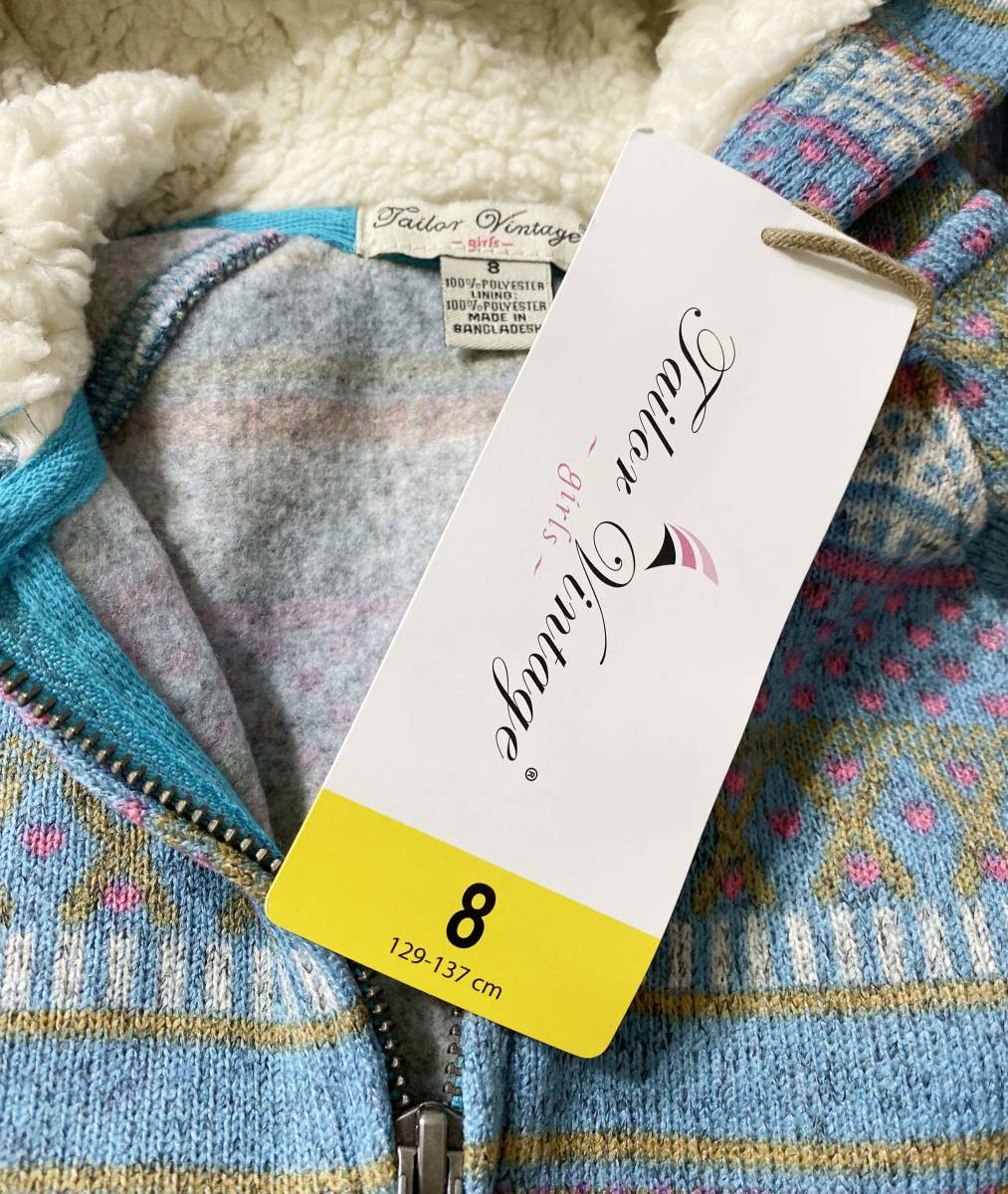 新品 ★ 130cm ニット パーカー ブルー ガールズ 8 コストコ tailor vintage フェアアイル柄 ジャケット フルジップ ボア ジャンパー