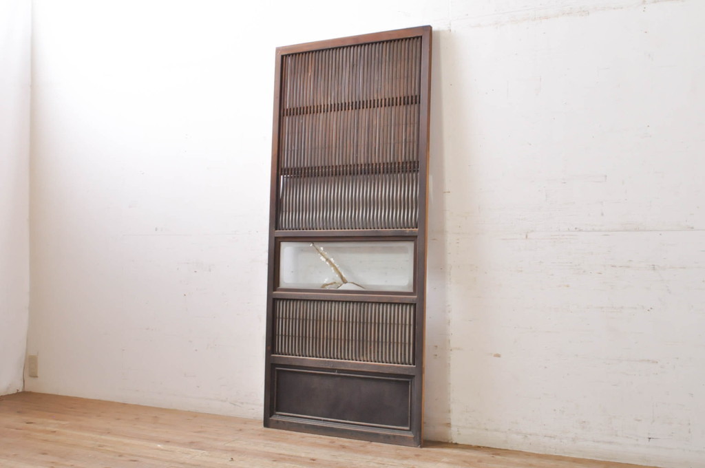 R-068283 アンティーク建具 どこか懐かしい雰囲気の裏障子付き幅狭格子戸1枚(引き戸、障子戸、ガラス帯戸)(R-068283)
