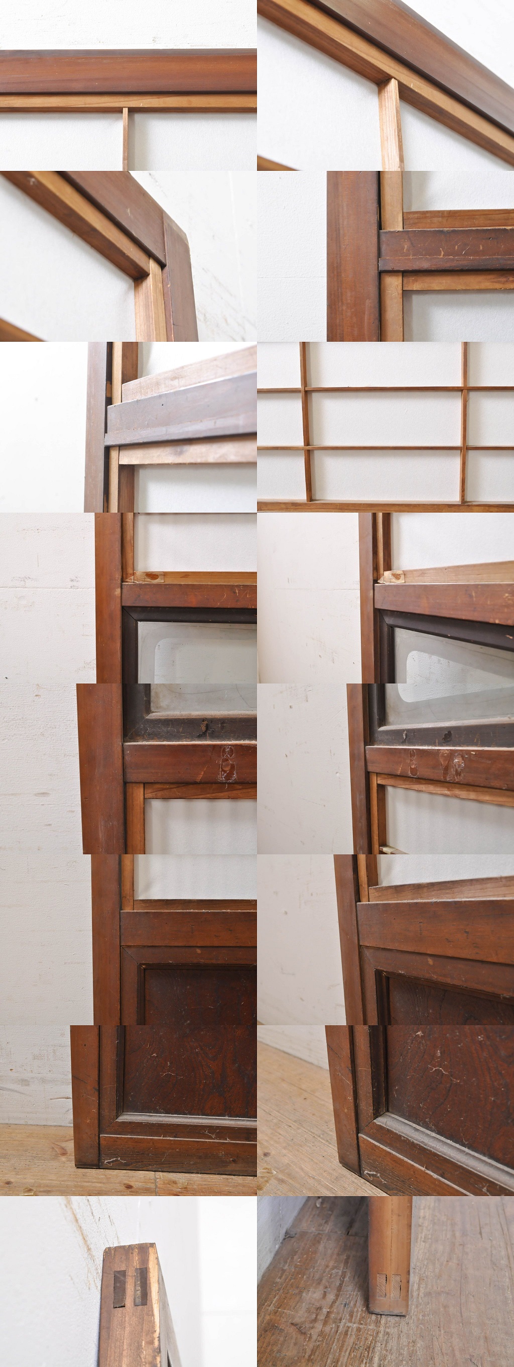 アンティーク建具 どこか懐かしい雰囲気の裏障子付き幅狭格子戸1枚(引き戸、障子戸、ガラス帯戸)(R-068283)