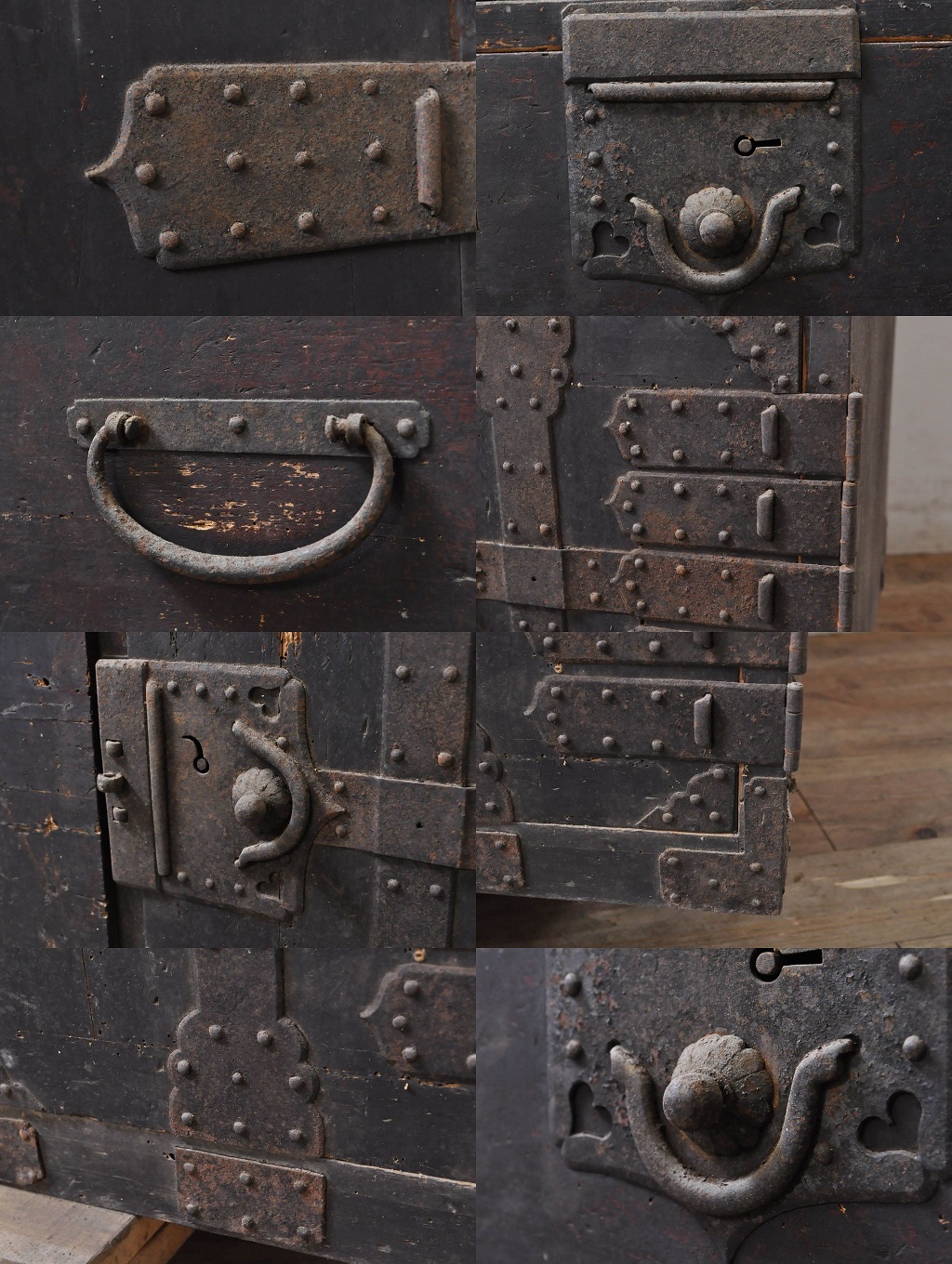 和製アンティーク 江戸期 金具の立派な重厚感ある佇まいの観音箪笥(重ね箪笥、衣裳箪笥、時代箪笥、収納箪笥、引き出し、店舗什器)(R-068351)