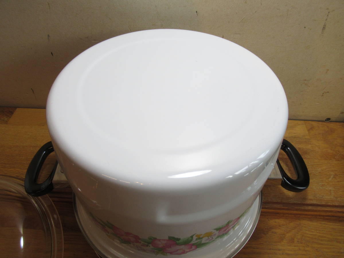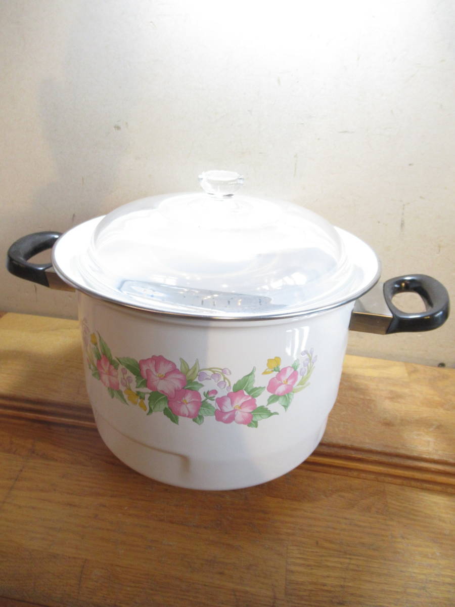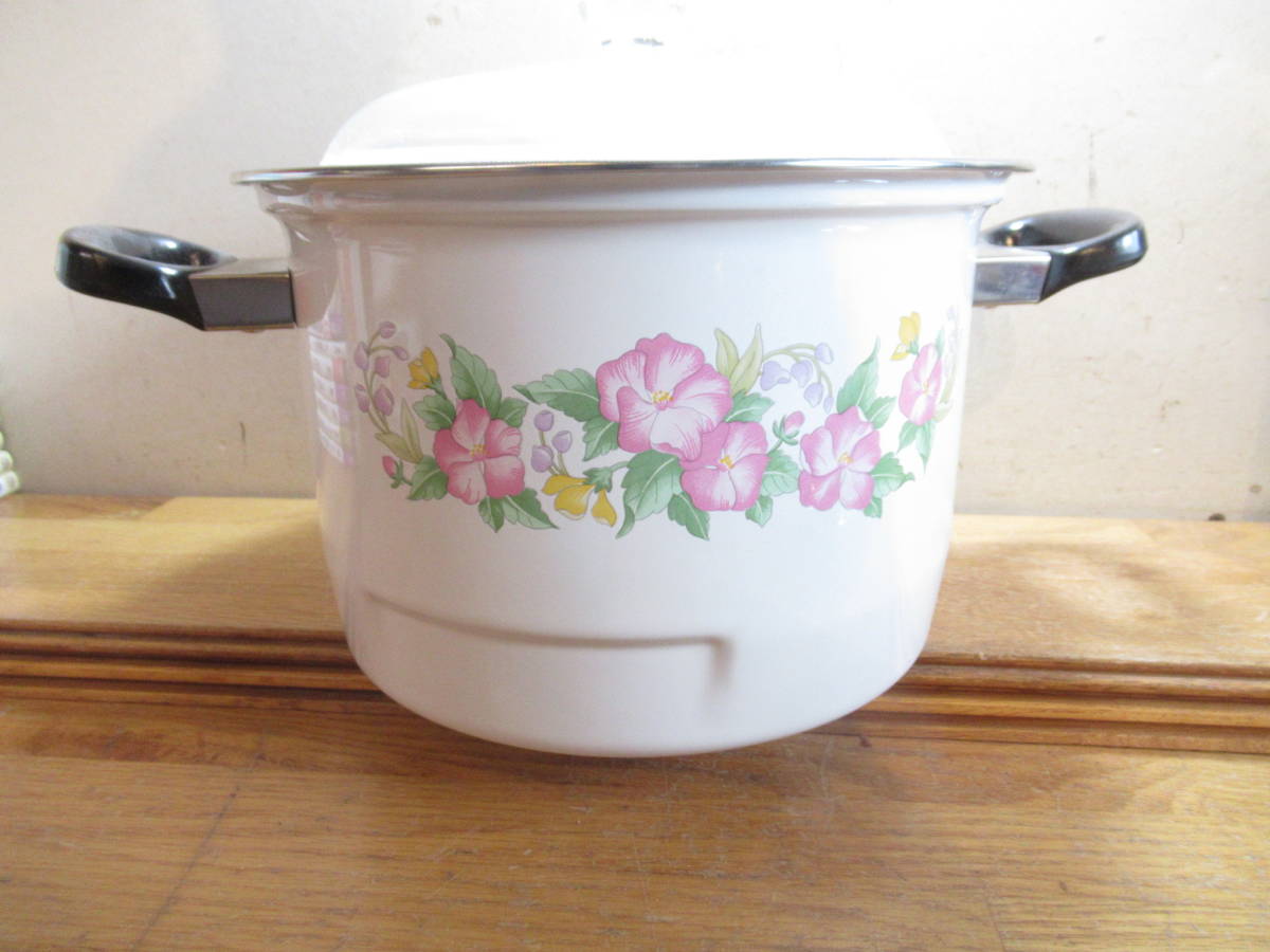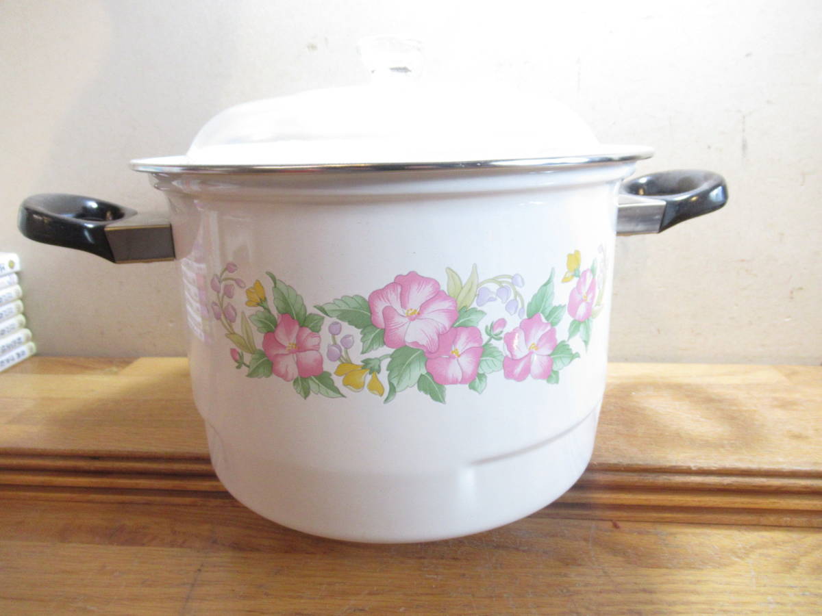 送料込 ホーロー両手深鍋 シチュー鍋 昭和レトロな花柄 箱無し 長期保管品 押し入れ整理品