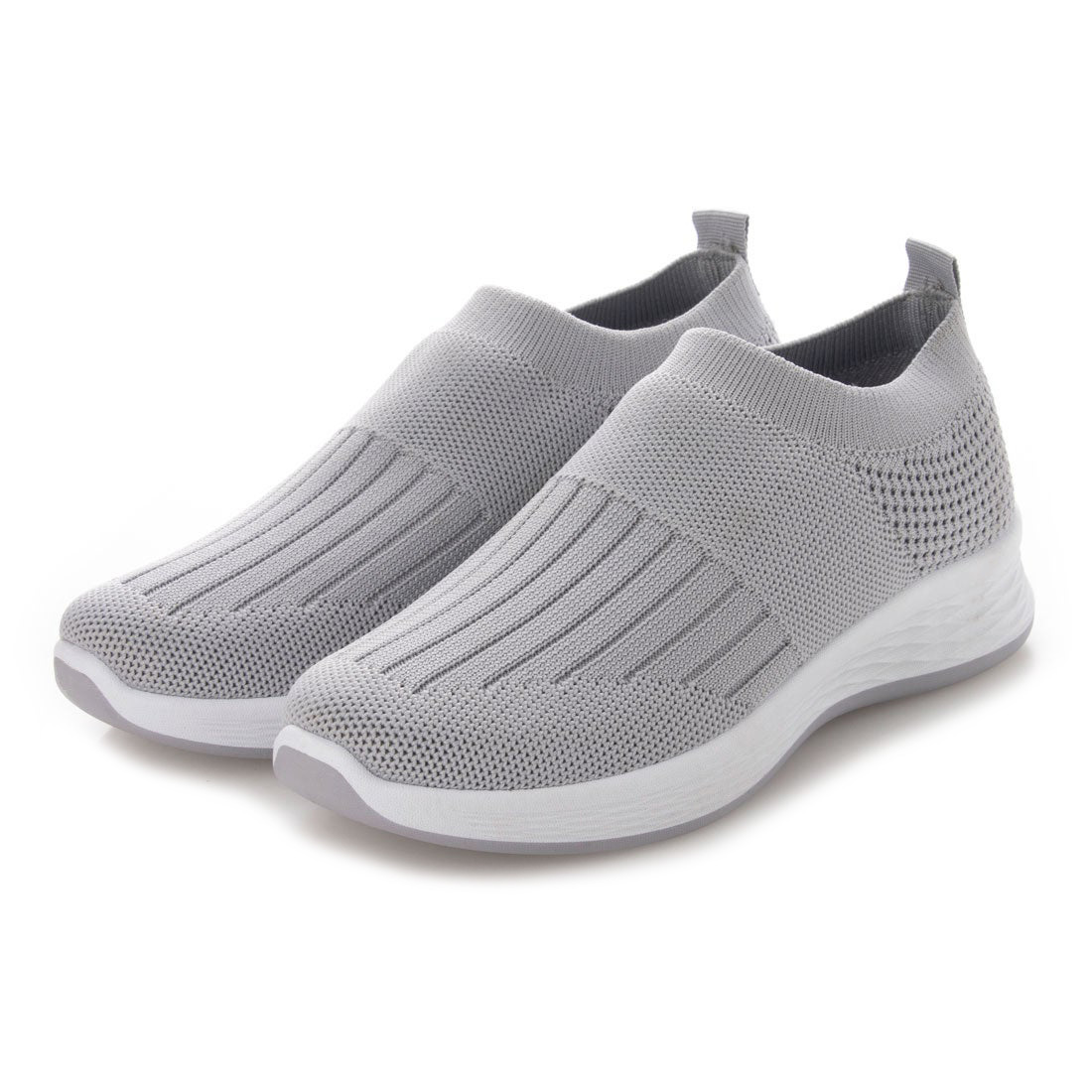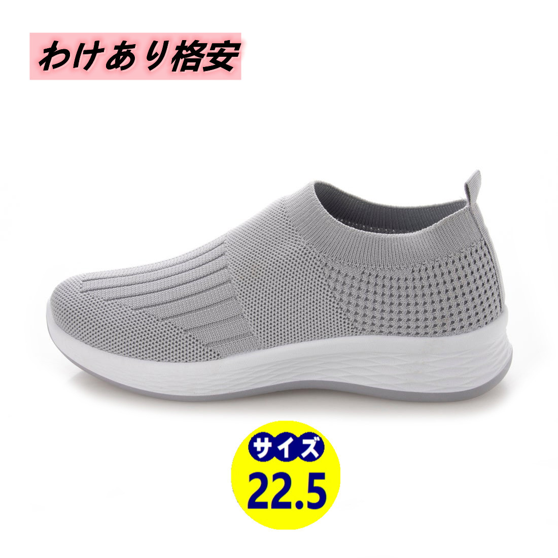 訳あり商品、格安!『22331-GRY-225』 男女兼用スリッポンフライニットスニーカー・ルームシューズ |