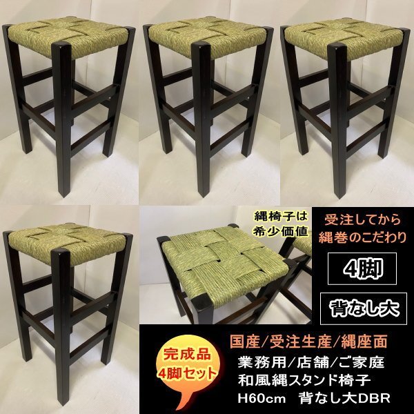 | タイトル | 国産 受注生産 背なし大 縄椅子 縄スタンド 4脚セット 完成品 NAWA 業務用 店舗用 H60cm 送料無料 ダークブラウンDBR |