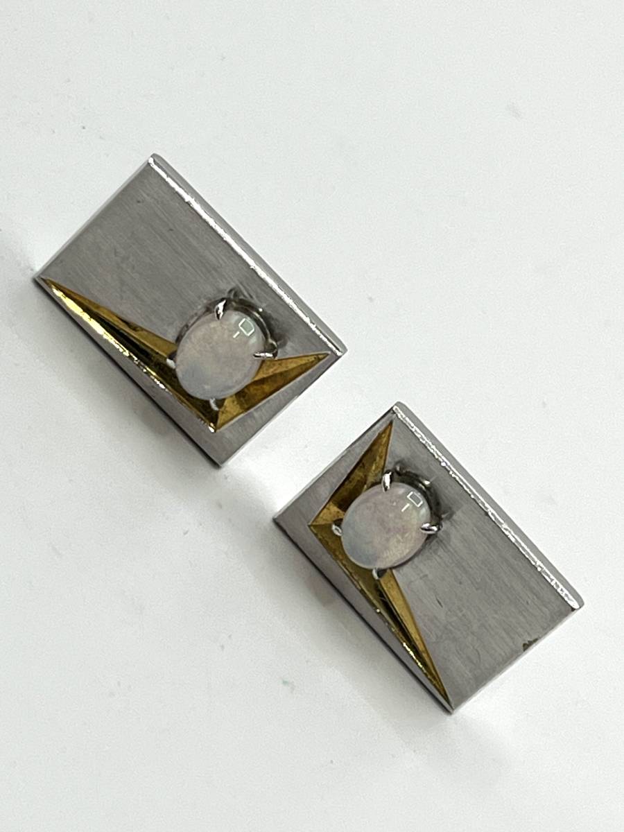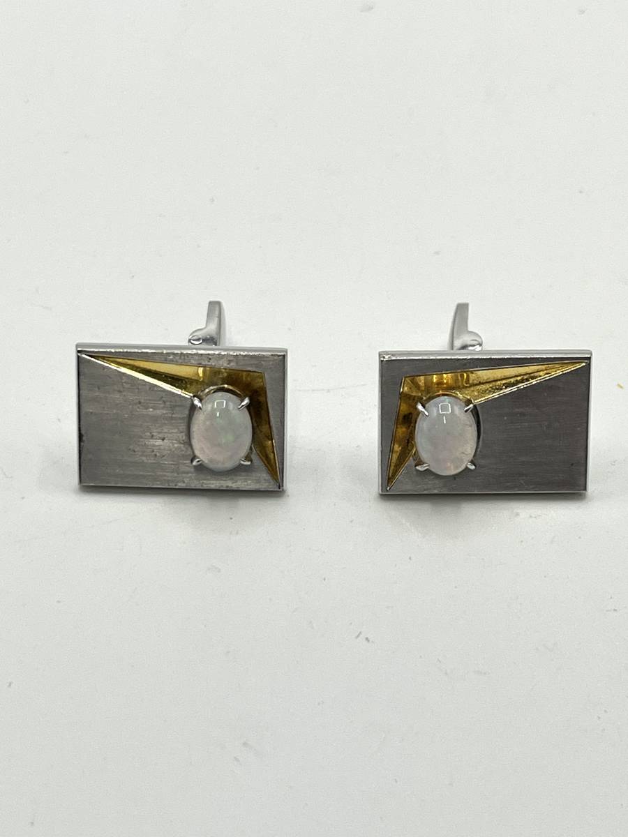 カフス スクエア 色石 偏光 シルバー×ゴールド