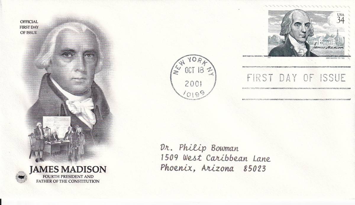 【FDC】著名人:ジェームズ・マディソン(2002年)(アメリカ)実逓 t4013