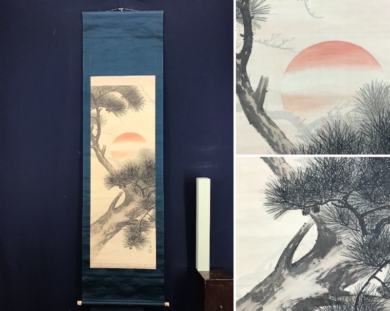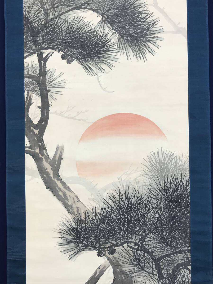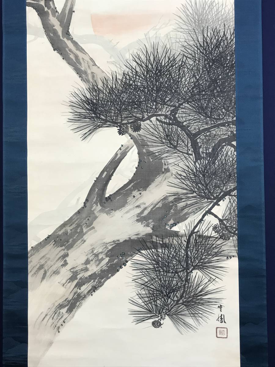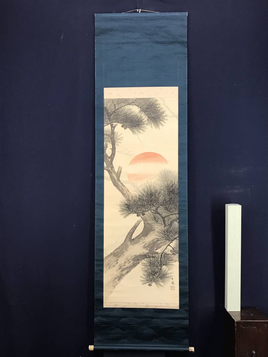 真作/雲鳳/松間旭日図/旭日老松図//掛軸☆宝船☆AD-782