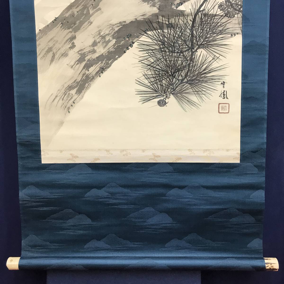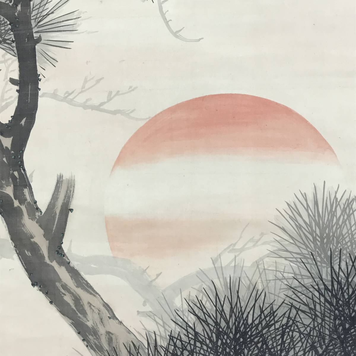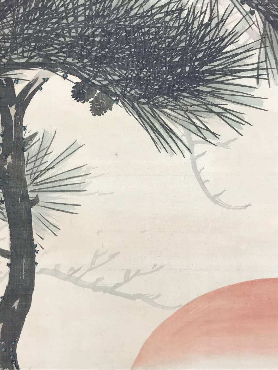 真作/雲鳳/松間旭日図/旭日老松図//掛軸☆宝船☆AD-782